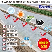 【耐候剤配合・空気や光はよく通す】:耐候剤配合で天候による劣化を引き起こしにくく、空気や光は通して植物を保護。