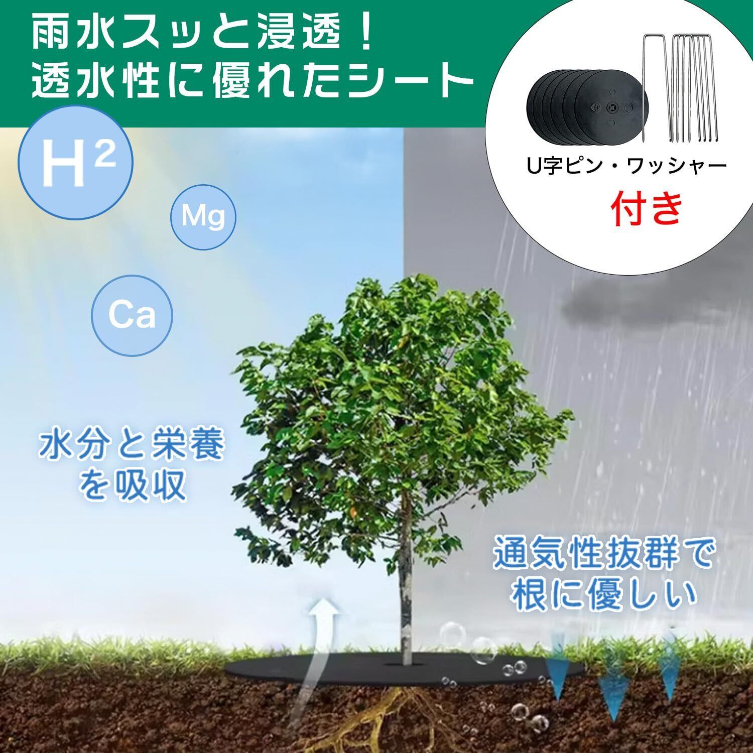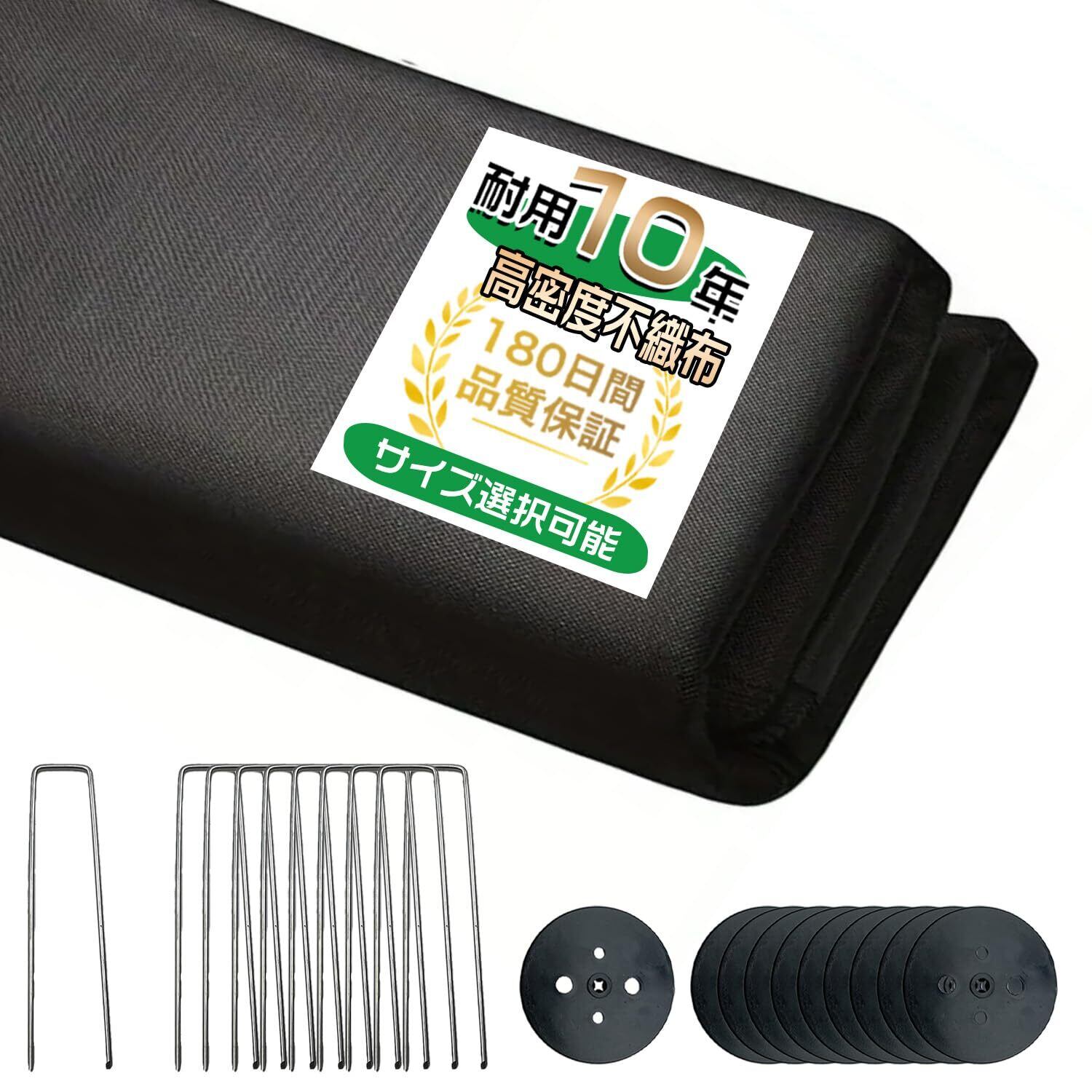 【セット内容・使用場所も豊富】 材質:高密度不織布(両面使用可) 付属品:スチール製Uピン+黒丸、説明書、ピックフックx1 ※ピンは亜鉛メッキ加工済みで、錆びにくく耐久性も抜群です。 使用場所例:路肩、畑、菜園、果樹園、花壇、空き地、建物周辺(庭、通路、物干し場、ウッドデッキ下、人工芝の下、砂利の下、ガレージ、墓地など)幅広い場所で活用できます。