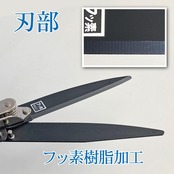 ●切れ味鋭い特殊刃物鋼使用。サビ、ヤニに強いフッ素樹脂コーティング