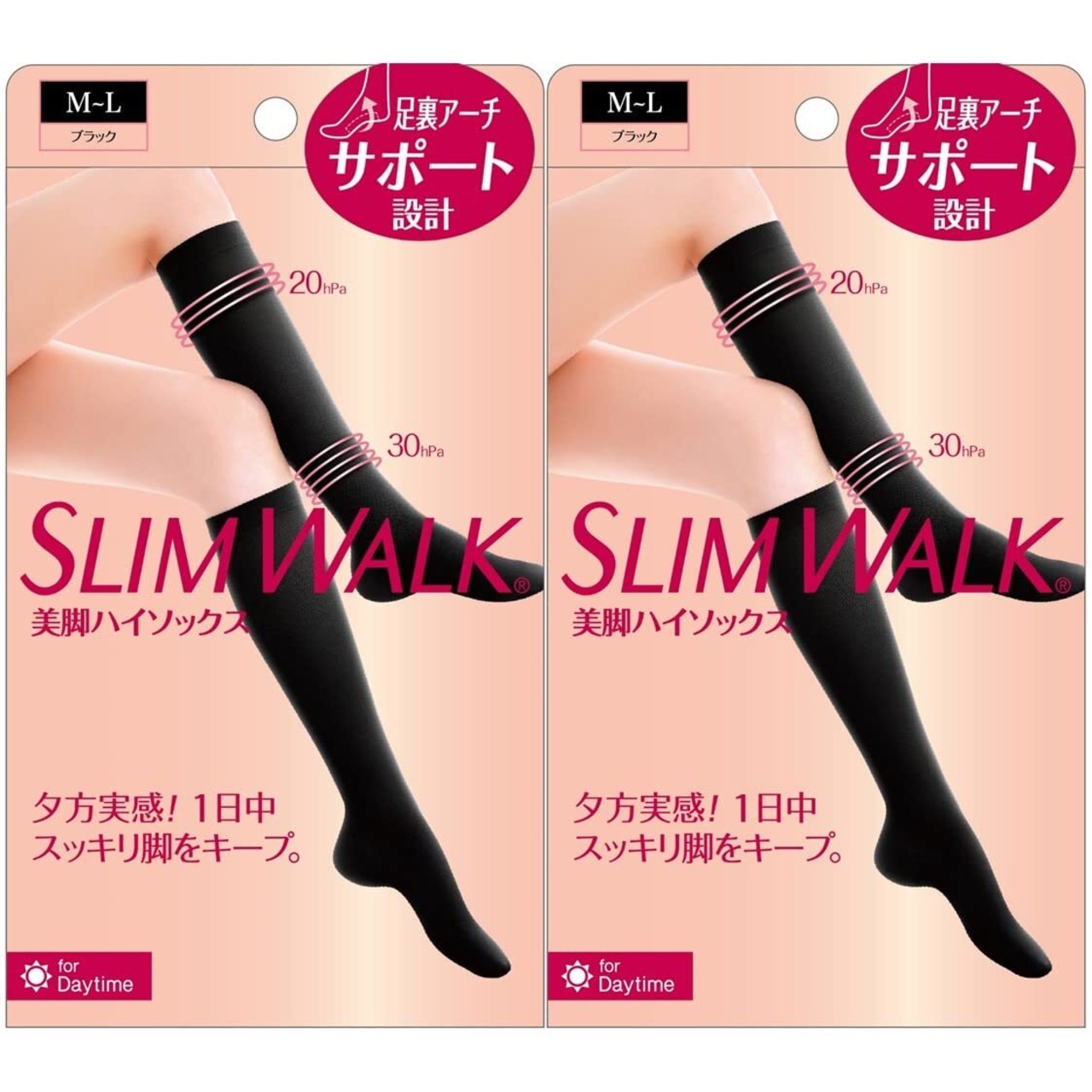 スリムウォーク 美脚ハイソックス ML 2個パック ブラック 着圧 加圧 着圧ソックス AskDoctors