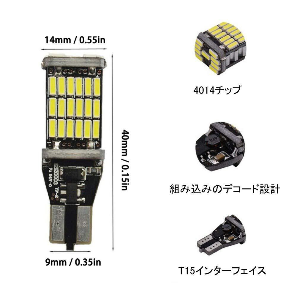 【新春セール】W16W T10 T15 T16 led バックランプ 爆光 キャンセラー内蔵 DC 12V 無極性 Canbus 45連 ホワイト 4個セット6000K (4個白)