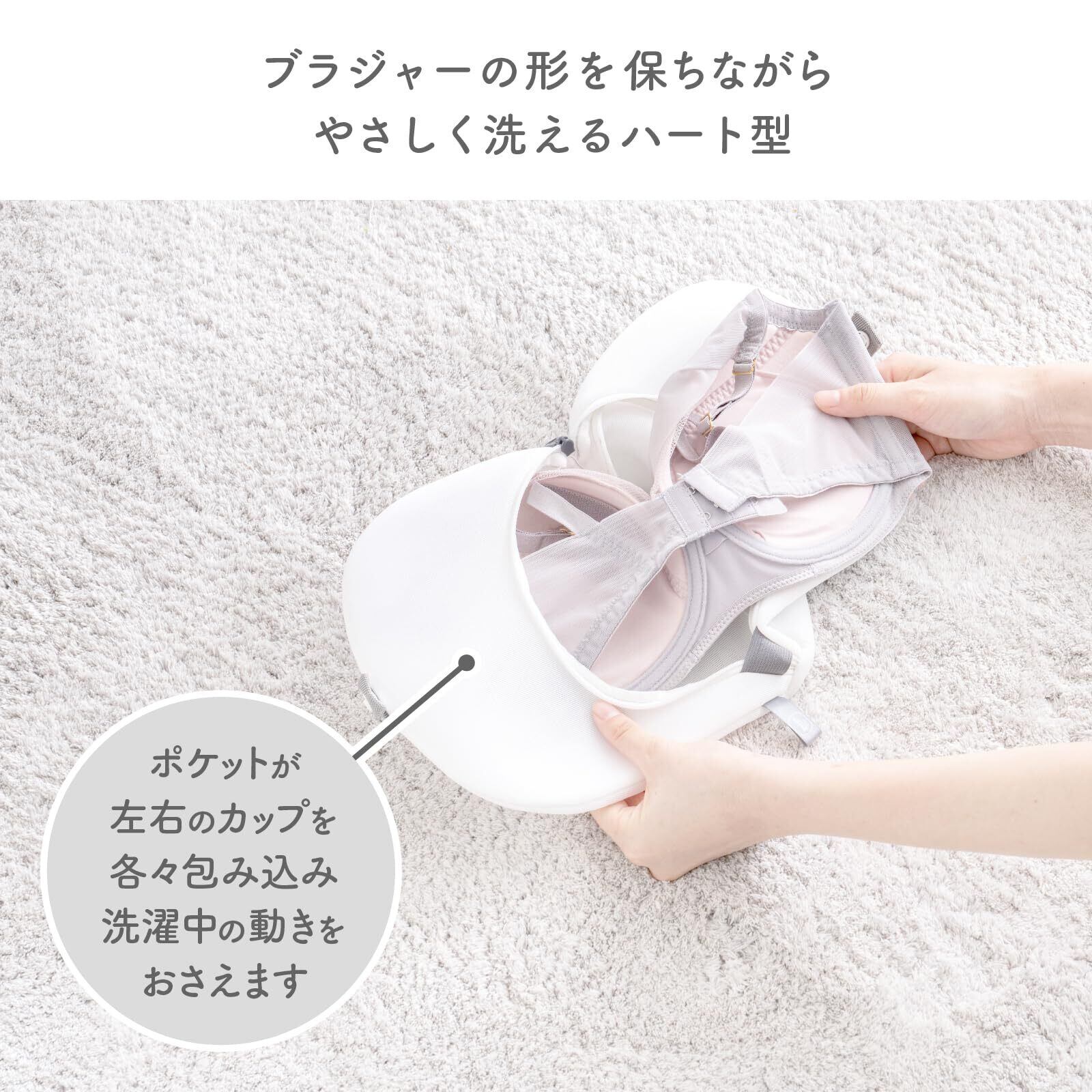 ●ハート型のポケットが左右のカップを各々包み込み、洗濯・脱水中に発生する擦れやねじれをおさえます。