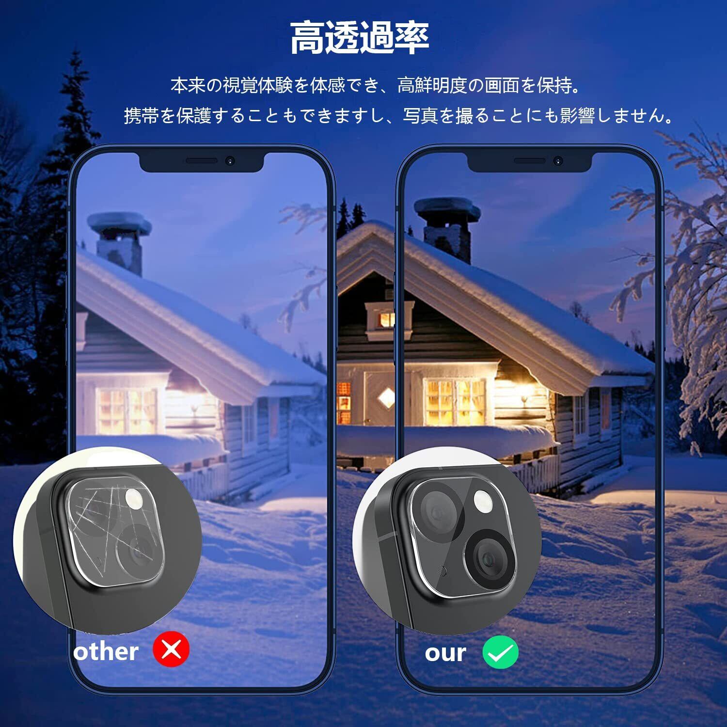 【対応機種】iPhone14 /iPhone14 Plus 専用 カメラ保護フィルム。(2枚セット)iphone 14 とiphone 14 Plus の2つのモデルの携帯電話のレンズフィルムに対応しています。本製品の表面硬度が9Hなのため、傷や擦れに強い、ナイフや鍵などの尖ったものでも簡単には傷がつきません。