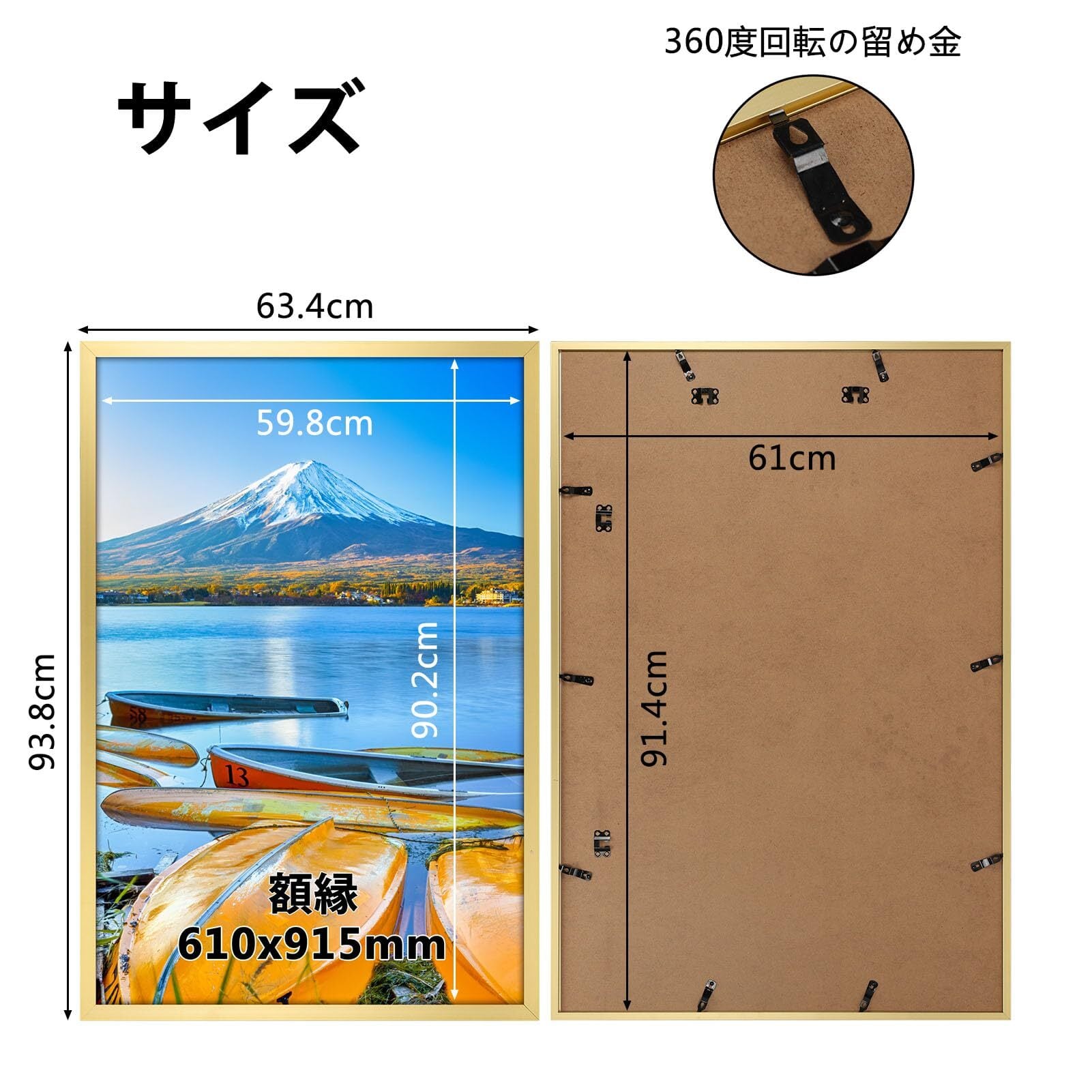 Vasemouh 額縁 フィットフレーム 610x915mm ポスター サイズ 壁掛け 額 写真 絵画 油絵 飾り ゴールド 1枚