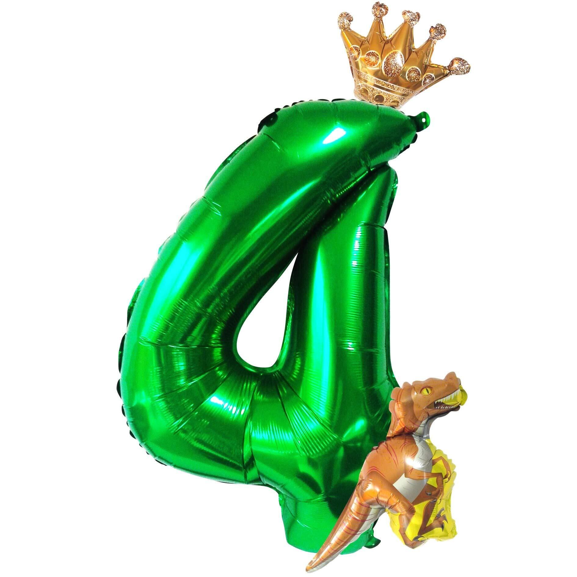【新春セール】deerzon 恐竜 4歳 数字 バルーン セット 誕生日 飾り付け 男の子 巨大 風船 バースデー 王冠 (数字「4」)