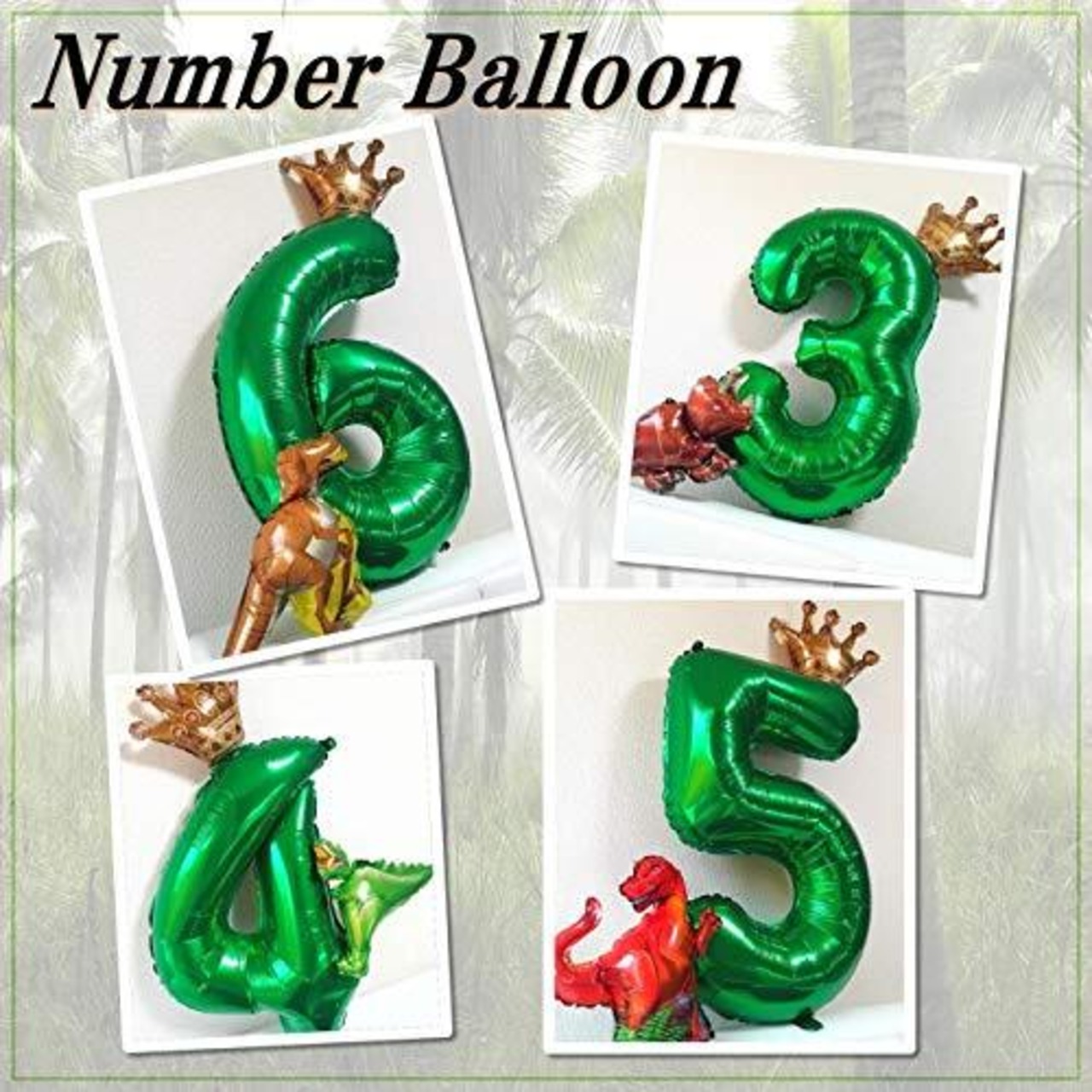 deerzon 恐竜 4歳 数字 バルーン セット 誕生日 飾り付け 男の子 巨大 風船 バースデー 王冠 (数字「4」)