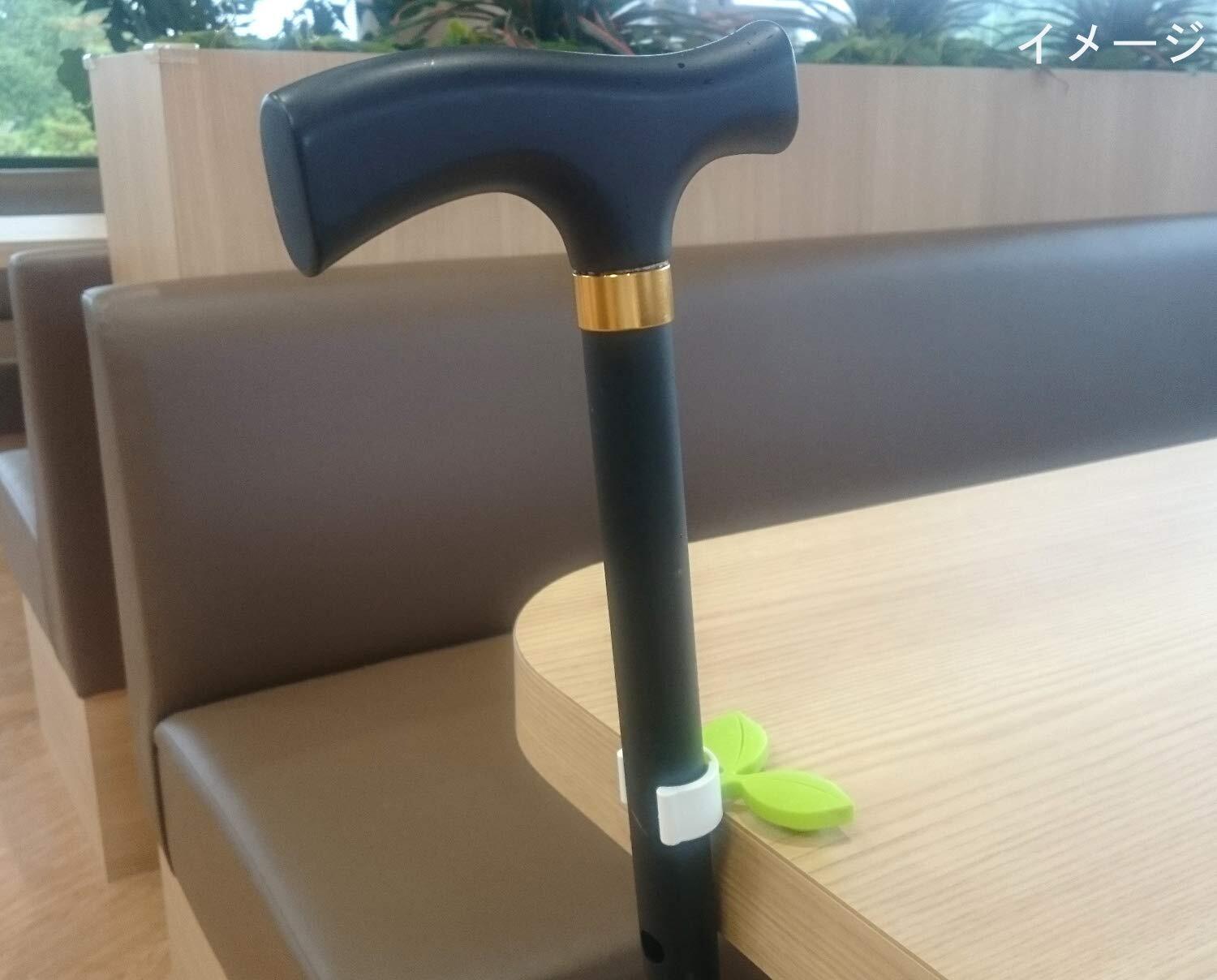 本体はエラストマー製で滑りにくく、裏の半円部で杖を支えますので、少しの奥行きでも片手で簡単に掛けることができます。