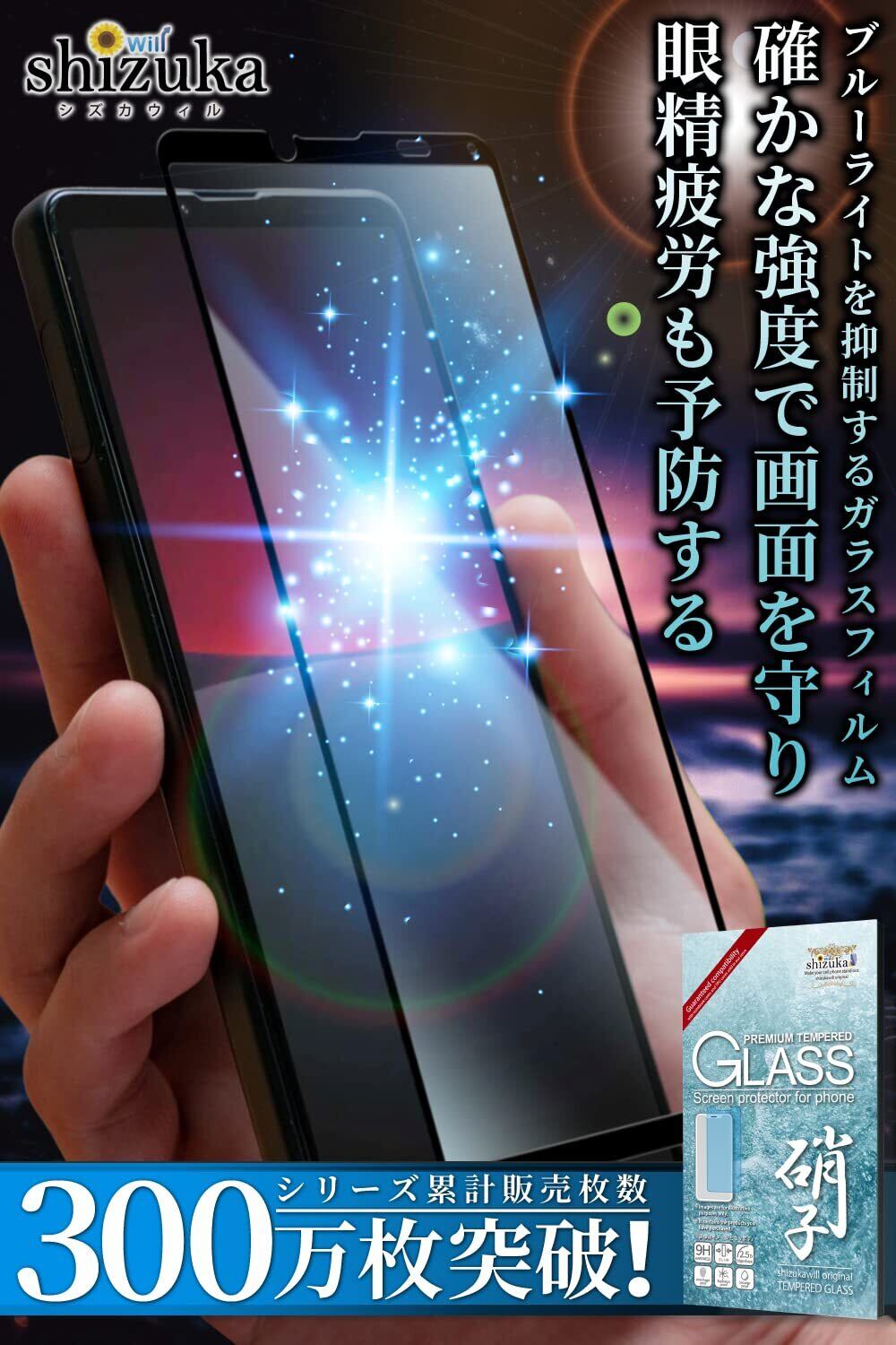 【在庫セール】シズカウィル Xperia 5 ii 用 ガラスフィルム 強化ガラス 全面保護 保護フィルム ブルーライトカット SO-52A 用 SOG02 用 XQ-AS42 用 液晶保護フィルム Black ブラック 1枚入り