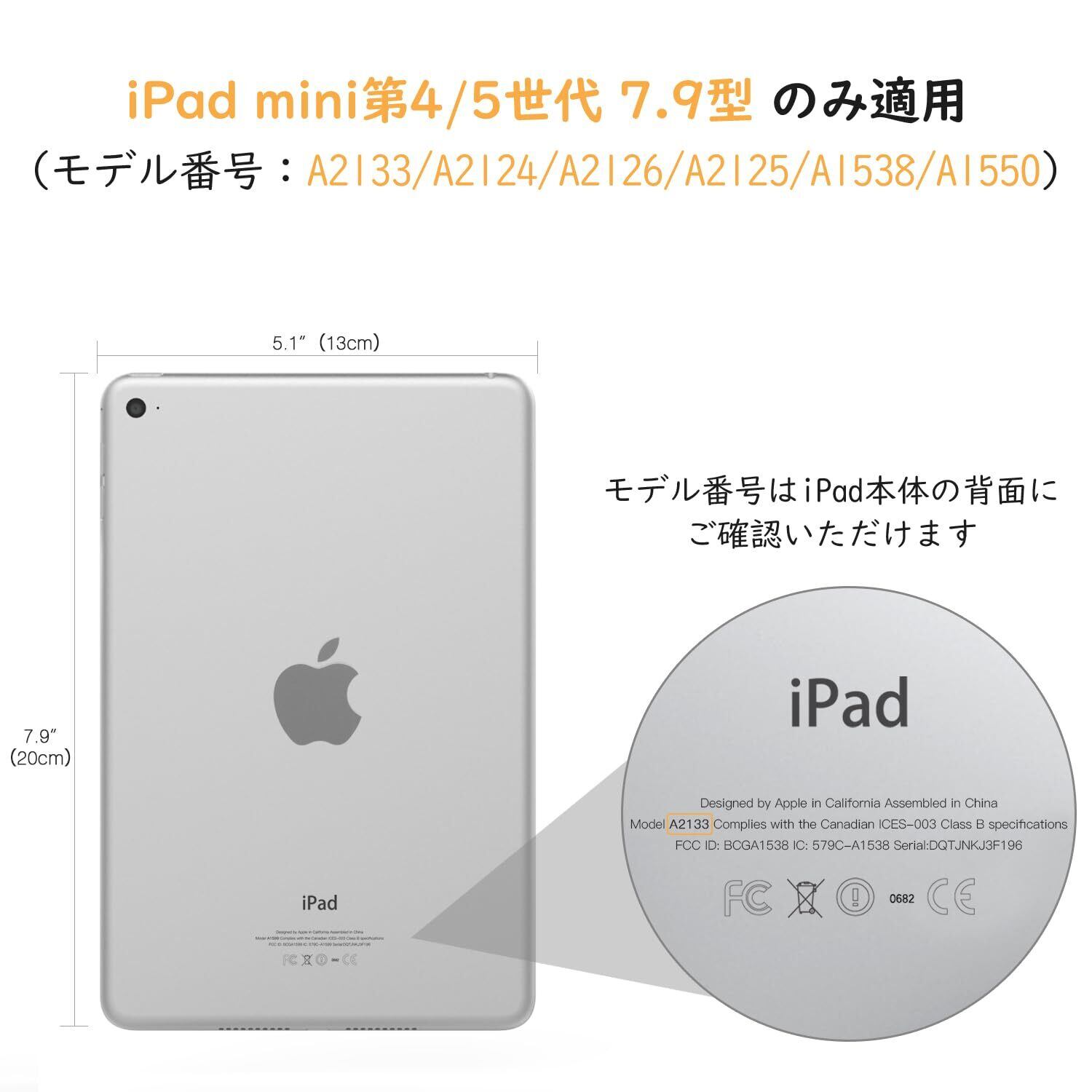 「適用機種」iPad mini 第5/4世代(モデル番号:A2133/A2124/A2126/A2125/A1538/A1550)のみ対応できます。iPad mini 第5/4世代以外の機種に対応できません。ご購入になる前に、機種をしっかりと確認してください。