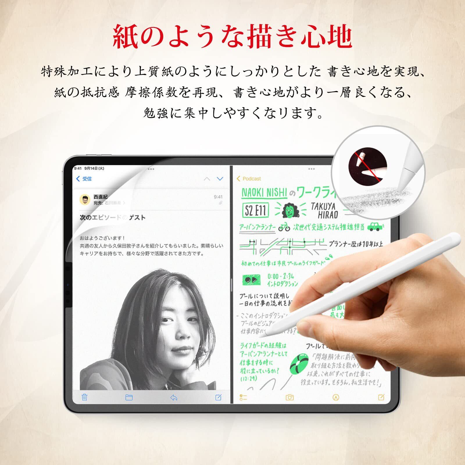 【ケント紙のような描き心地】iPad pro 12.9 ペーパーフィルムは日本からの高密度素材を採用し、適度な摩擦と抵抗力があり、文字やイラストなどを書き込む際に滑りにくく、紙のような質感を楽しめます。また、ペーパーフィルムはApple pencilと交換性があり、ストロークが滑らかでペン先磨耗も抑えられ、快適な書き心地を実現します。