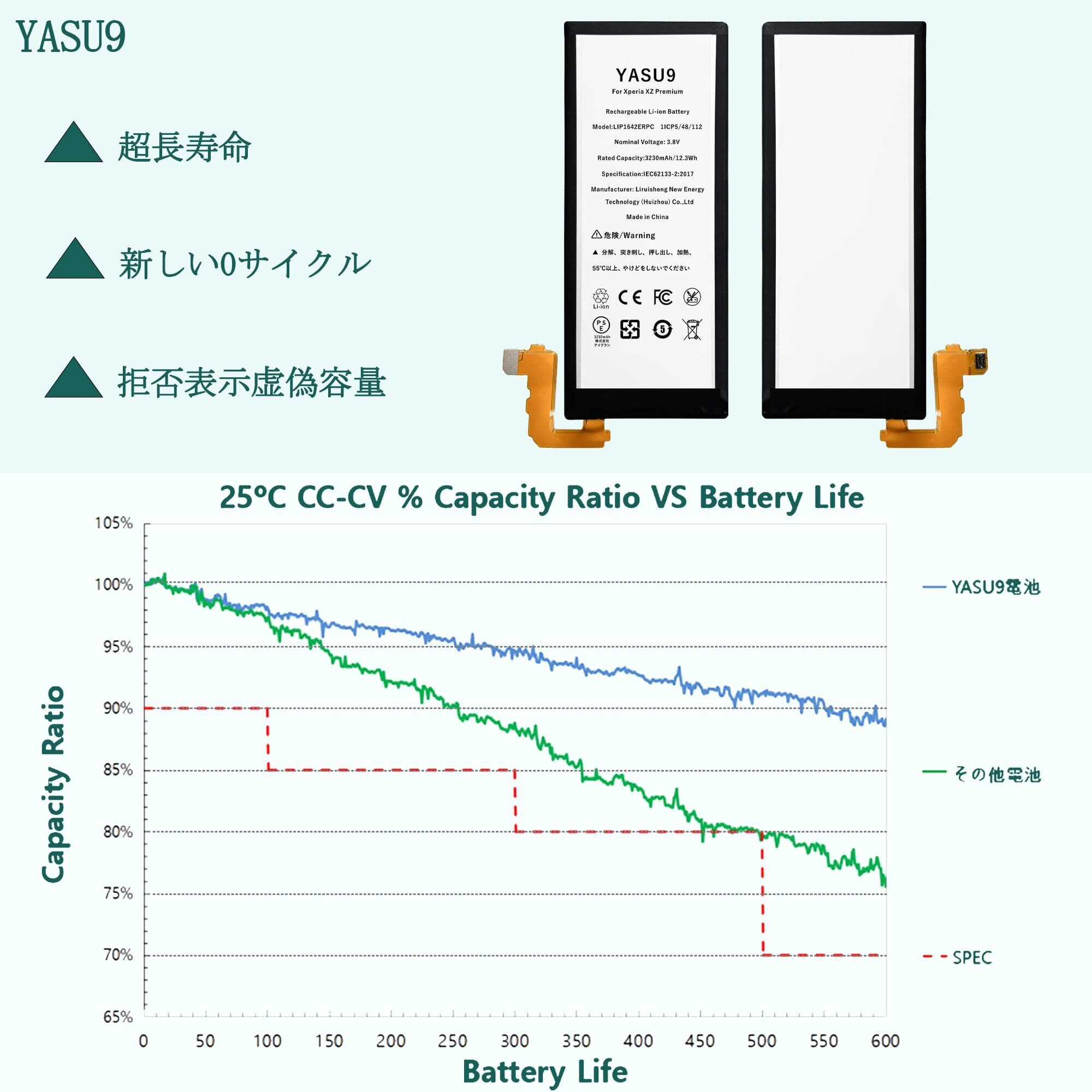 【在庫処分】YASU9 for Sony Xperia XZ Premium バッテリー互換 適用LIP1642ERPC電池 元の容量3230mAh 3.8V PSE認証 対応SO-04J/G8141/G8142機種 交換修理用 対応Xperia XZ Premium電池【For Tool】