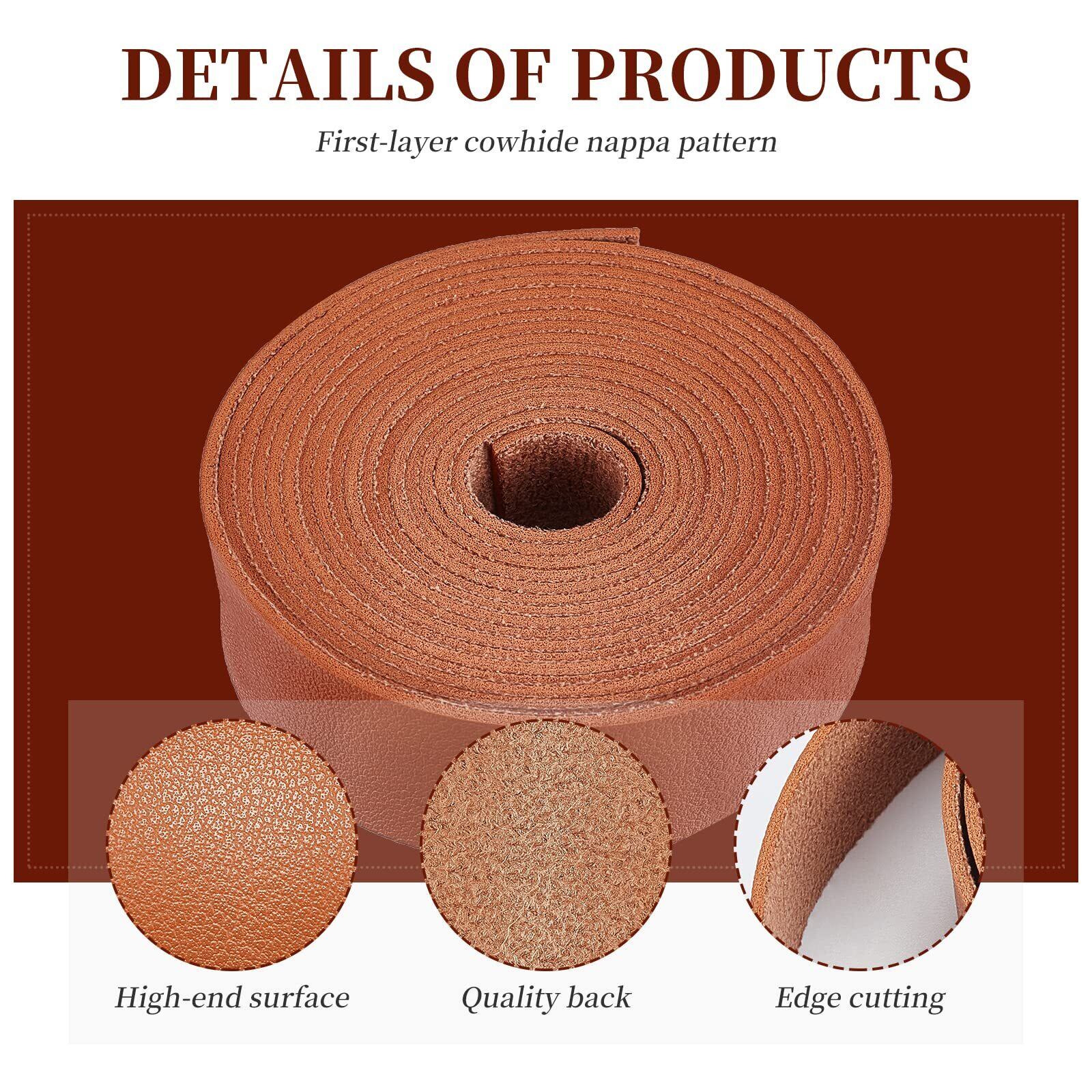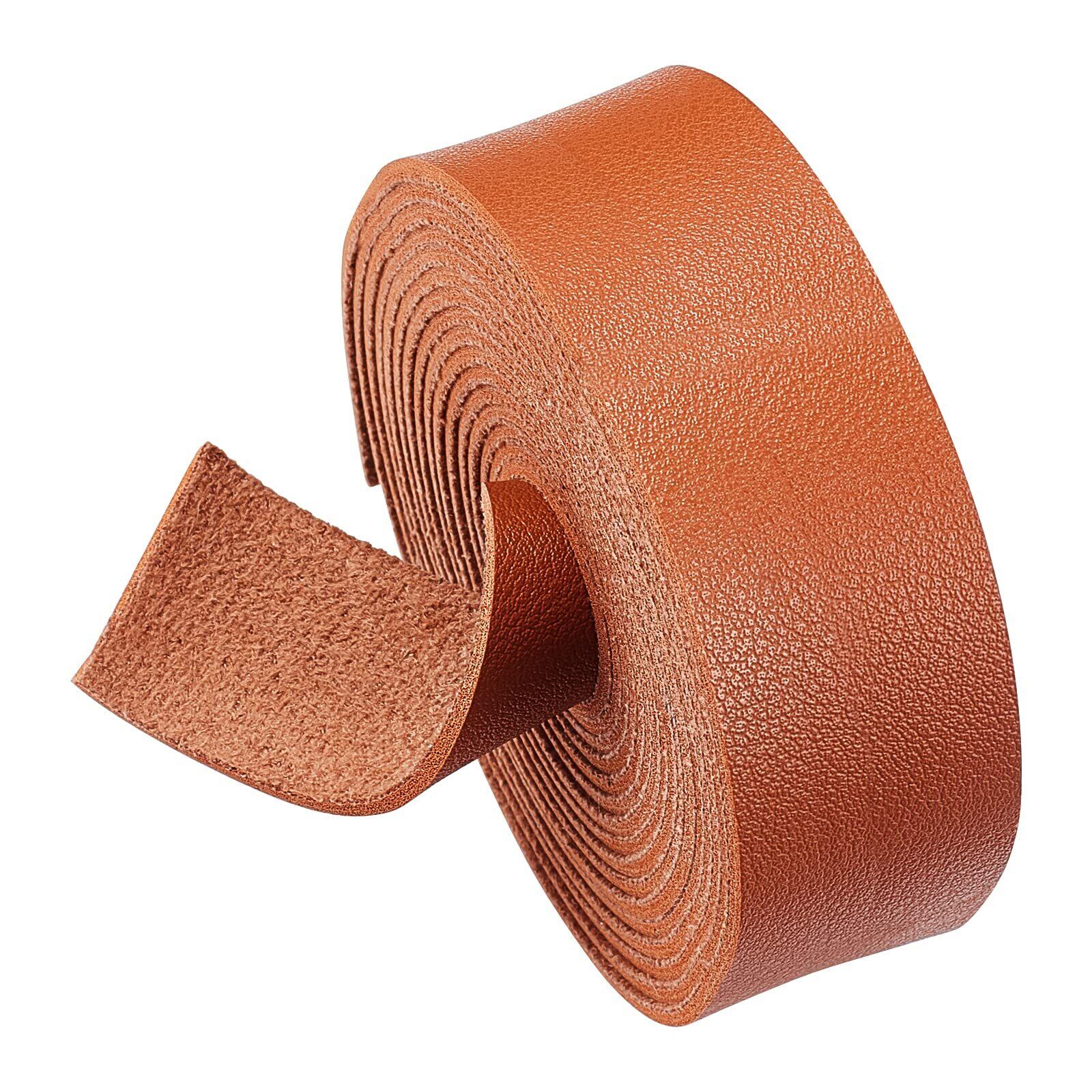 BENECREAT 2.5mx25mm レザーテープ ロール ライチ模様 片面レザー 合皮 生地 厚さ1.8mm 柔らかい バッグ 革小物作り ソファー 車シート補修 張り替え フェイクレザー 手芸材料 (茶色)