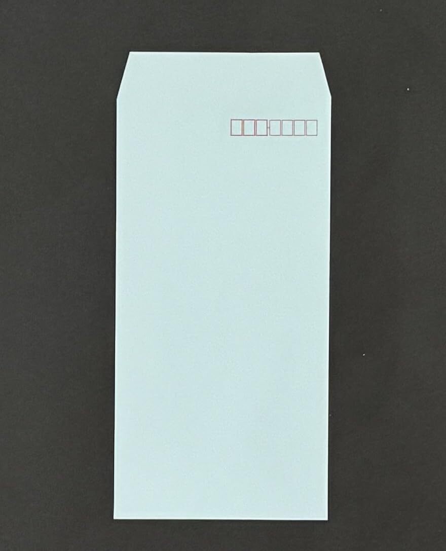 郵便枠入りの長3カラー封筒です。(水色) 貼り合わせがセンターにないので宛名書きがスムーズです。1パック100枚入り。