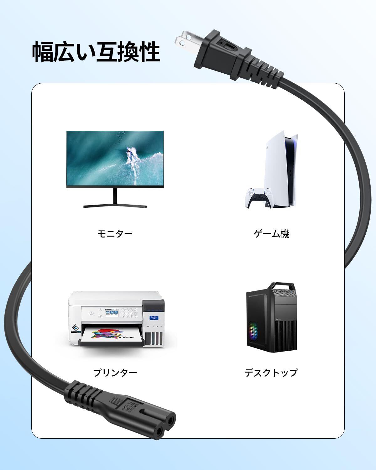 【幅広い互換性】IEC規格C7(メガネ型)コネクタ採用、対応AQUOSテレビ、AQUOS 4Kレコーダー・ブルーレイ、AQUOSオーディオなどの機器に適合します;対応Sharp AQUOS TV 2T/4T/8T シリーズ, LC-13/15/16/19/20 シリーズ、LC-22/26/30 シリーズ、LC-32 シリーズ、LC-37/40 シリーズ、LC-42/45/46/52 シリーズ、LC-H18 シリーズに対応。 具体的な型番は商品説明でお見つけできます。ご購入する前にお使いデバイスのコネクタ仕様をしっかり確認してください