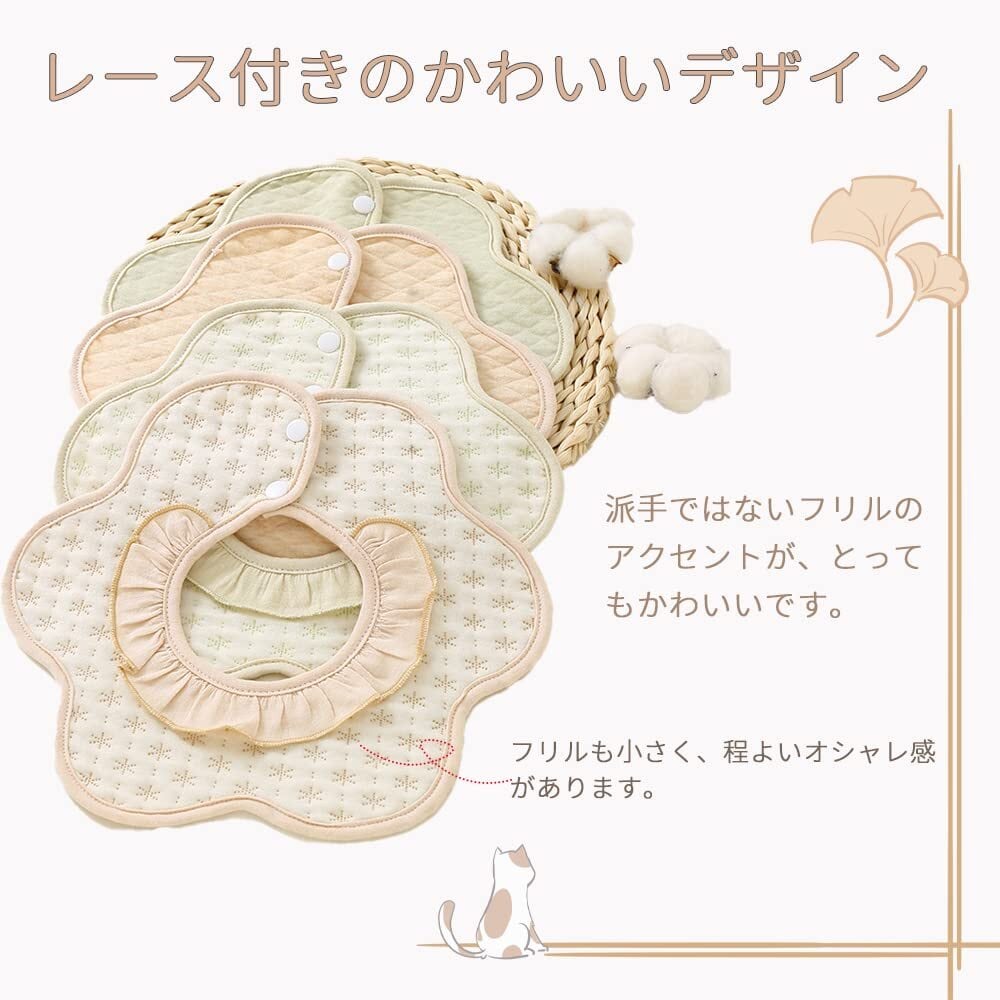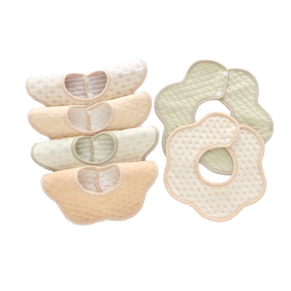 [Elf-feer] スタイ よだれかけ ベビー ビブ 綿 360 防水 赤ちゃん エプロン セット 無地 落ち着いたデザイン 食事用 花びら型