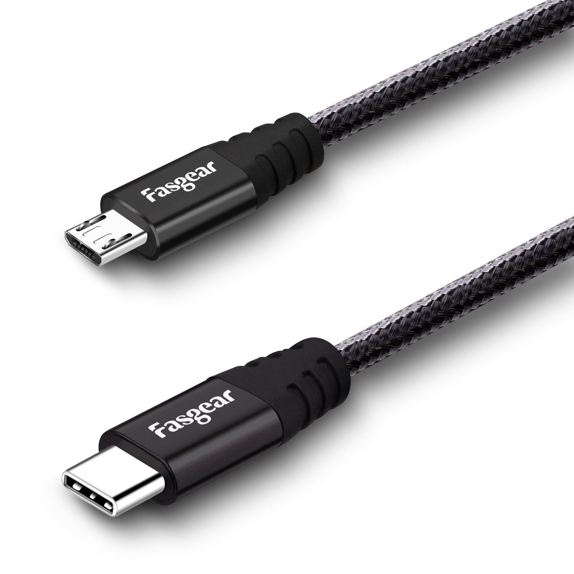 Fasgear USB C to Micro USBケーブル 30cm ナイロン編み込みタイプCからマイクロUSBコード Galaxy S7 / S6、HTC One / 10などと互換性があります(黒、30cm)