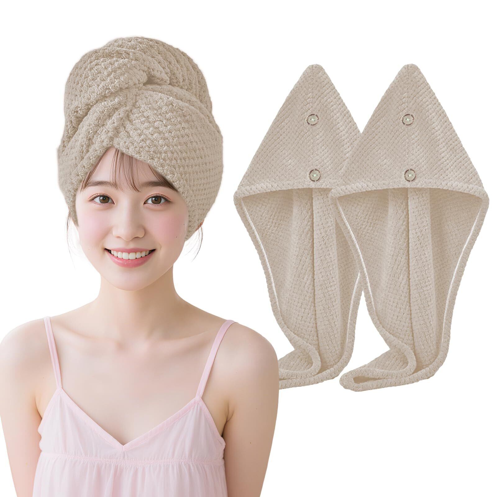 【強い吸水性&時間短縮】:タオルキャップは、マイクロファイバー素材とパイナップルグリッドデザインを採用しており、髪の水分蒸発を促進し、短時間で髪を乾かすことができます。これにより、ドライヤーの使用時間を節約できます。通気性に優れた生地と独自の内部構造により、空気の循環が速く、髪の水分を素早く吸収します。2枚組は特に忙しいサラリーマンに最適です。