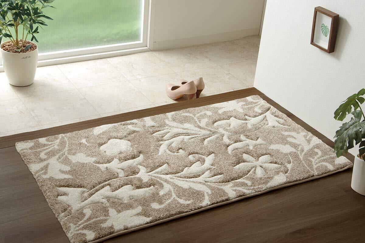 イケヒコ 玄関 選べる マット ラグ ウィルトン 単品 ネム ベージュ 約50×80cm 厚み 約15mm トルコ製 へたりにくい 耐久性 弾力性 抗菌防臭 消臭 エレガント カービング 加工 洗濯不可 おしゃれ ふわふわ #1311320021701