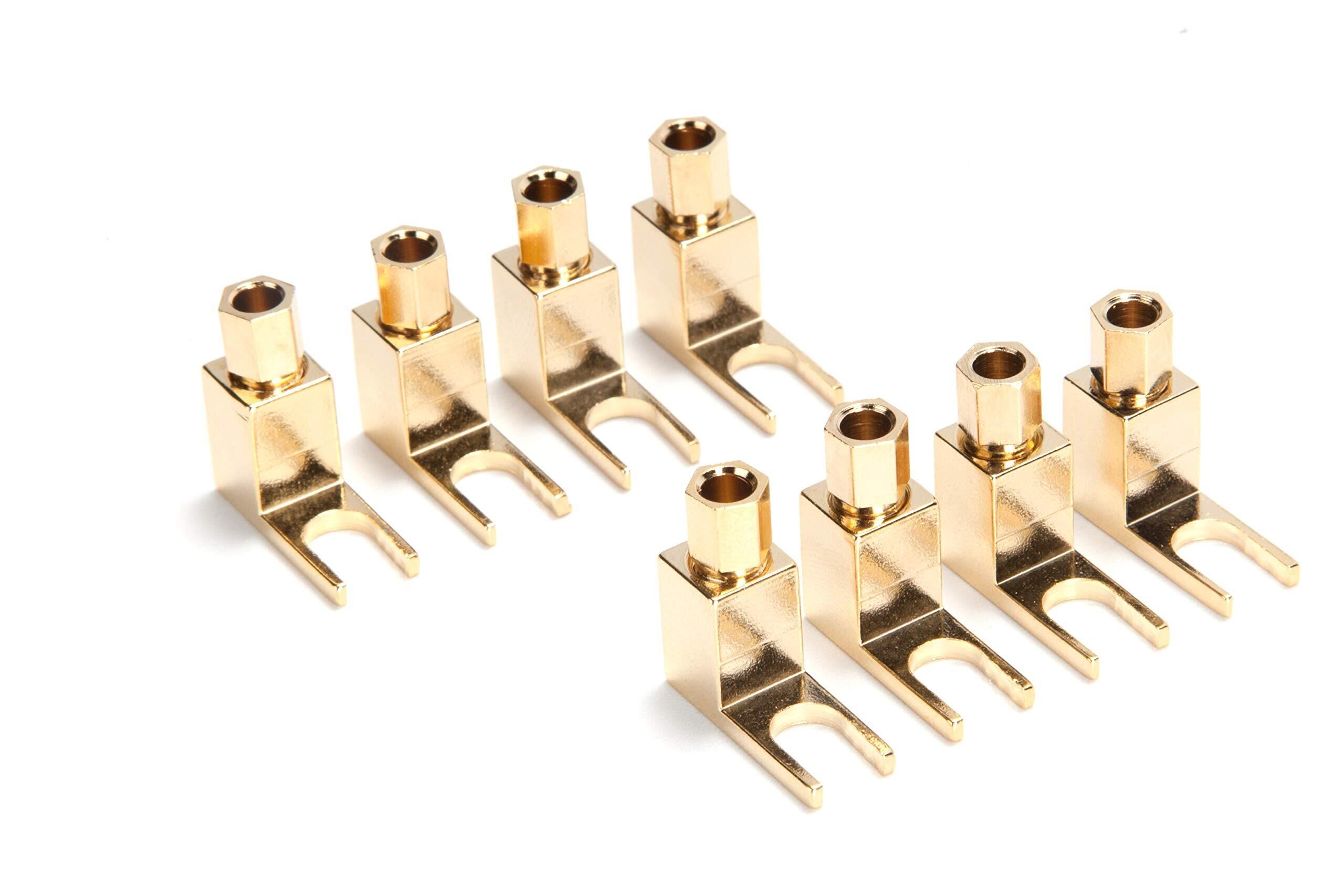 【新春セール】【WYVERN AUDIO 】Yラグ端子 /8本1組 L型 ソルダーレス (無ハンダ) バナナプラグをスペードプラグ(Yラグ) L型に変換!! 金メッキ ケーブル差込口径3.93mm 8本セット【バナナプラグレボリューション】Y-8