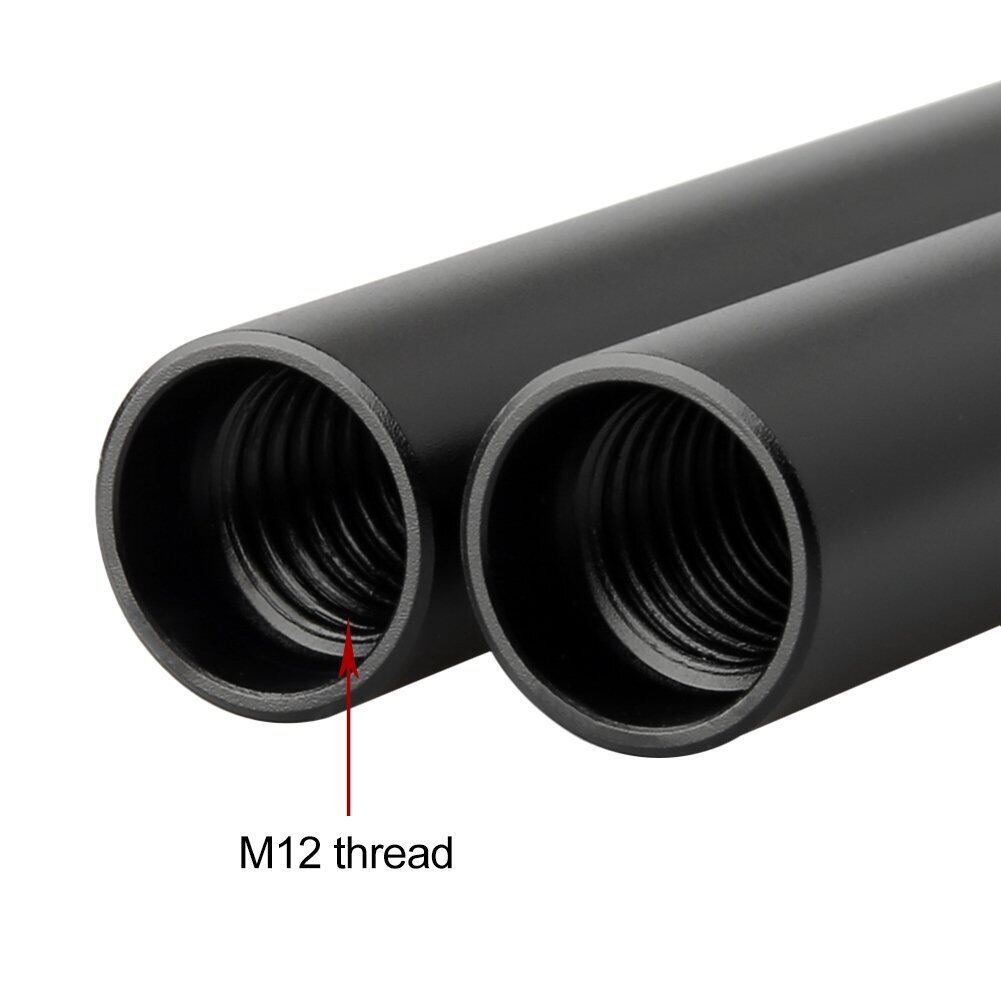 NICEYRIG カメラロッド カメラ15mmロッド 2本セット 長さ15cm M12 Thread 穴外径15mm 6吋パイプ Camera Rod アルミニウム製 超軽量 デジタル付属品 カメラアクセサリー 撮影安定性機材 (2本入リ) 黒 ―R071