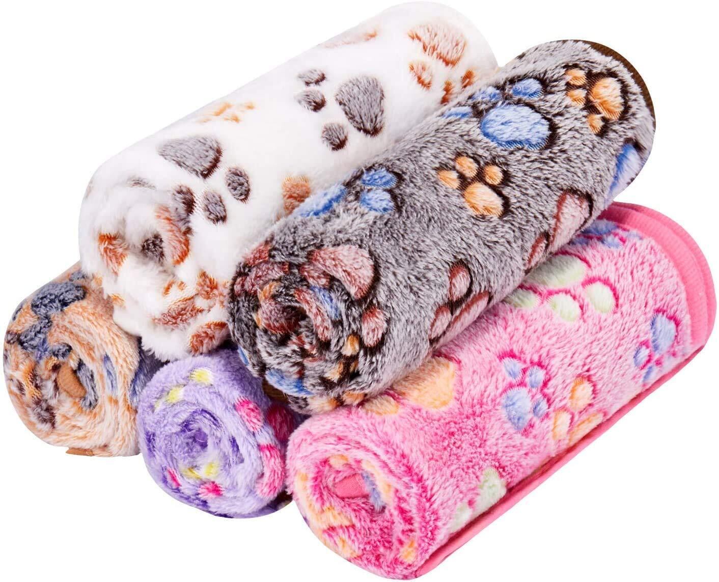 【5枚セット】5色セット60x40cm、可愛い猫の足跡柄です。サンゴフリース素材で作された毛布は、ふわふわ柔らかいの手触りがあり、ペットの肌には優しいです。
