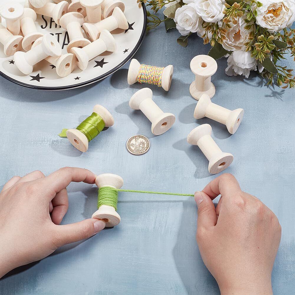 BENECREAT 20個 木製空スプール 木製ボビン 糸ボビン 48x31mm 糸スプール 空糸巻き 木製リボン糸巻き ボビン 木糸ホルダー ワイヤー織りアート 織りボビン DIY製作用