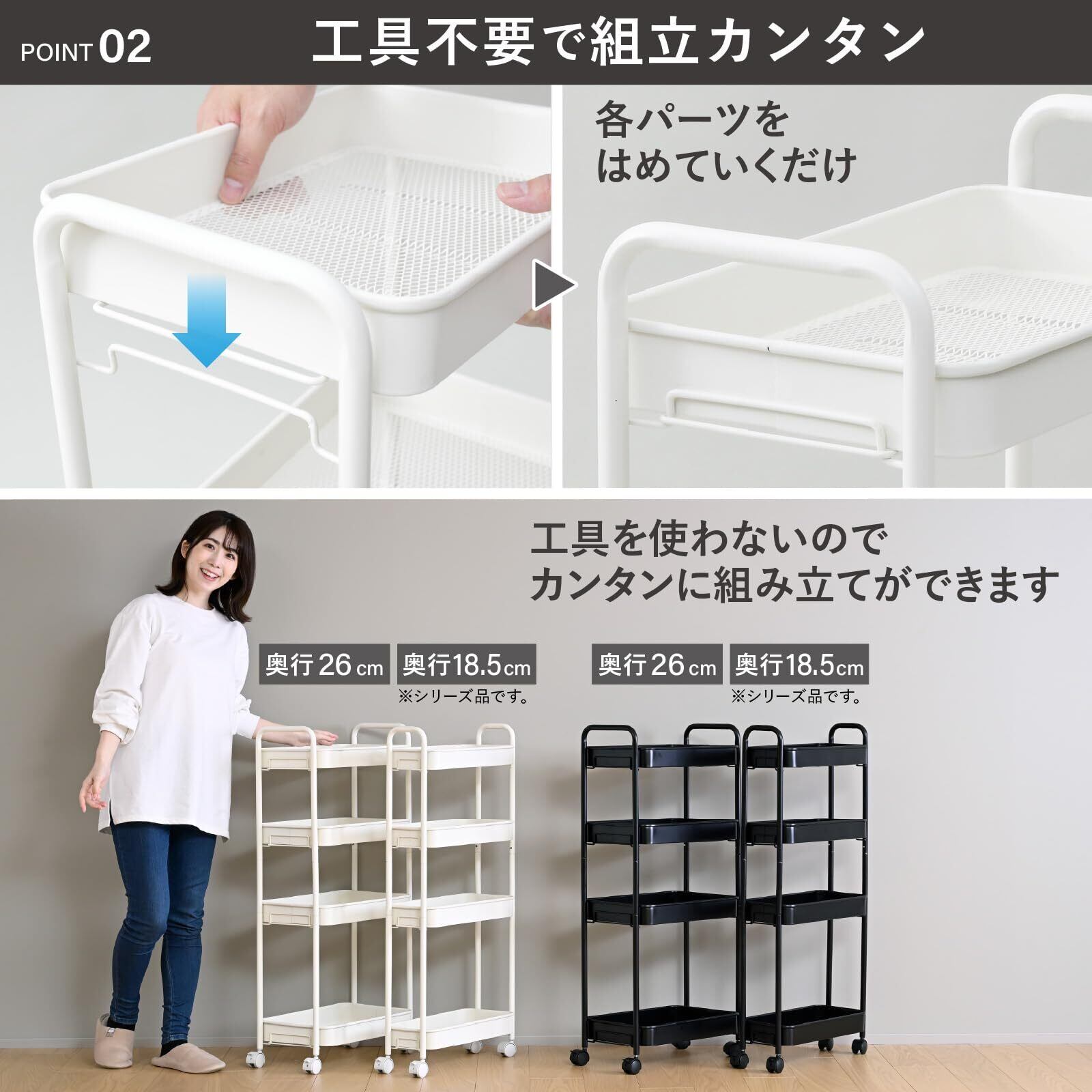 【組立てカンタン】工具不要でパーツをはめるだけでカンタンに組み立てできる収納ワゴンです。
