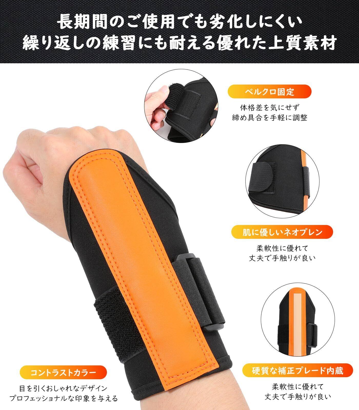 MoKo ゴルフ練習器具 ゴルフリストラップバンド スイング改善補正 ハンドファースト習得 手首折れ防止 リストバンド 左右兼用 BlackOrange