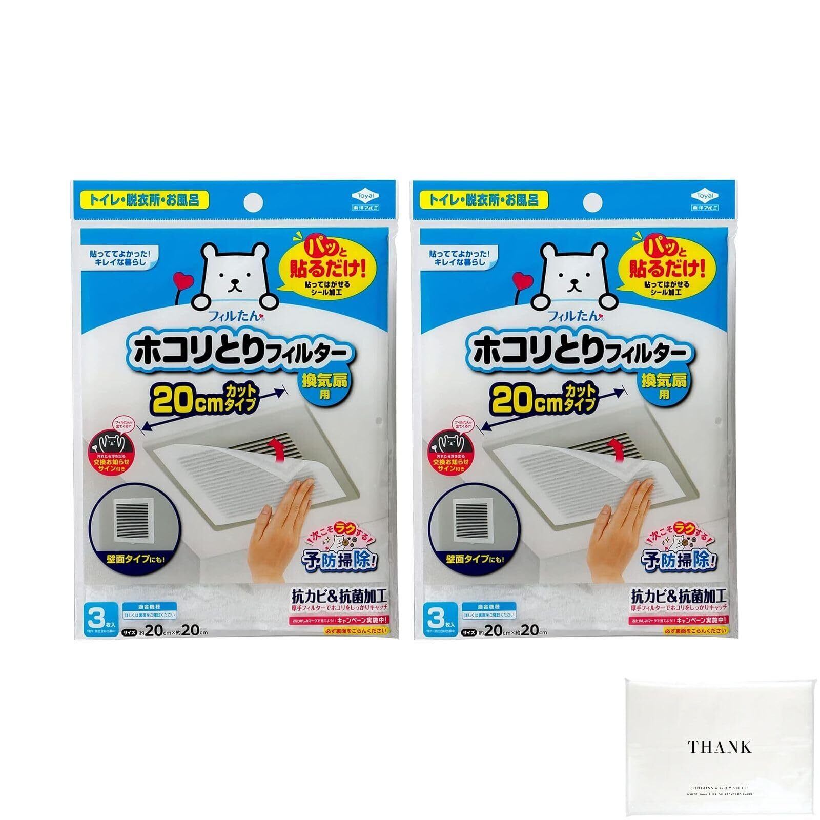 【数量限定】フィルたん 換気扇 トイレ 脱衣所 お風呂 パッと貼るだけ ホコリとりフィルター 換気扇用 20cmカットタイプ (2個)