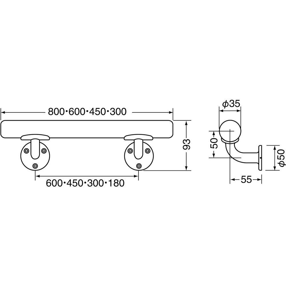 TRUSCO(トラスコ) 横型 ミニ手すり 35φX450 シルバーライトオーク HBIY450-SO