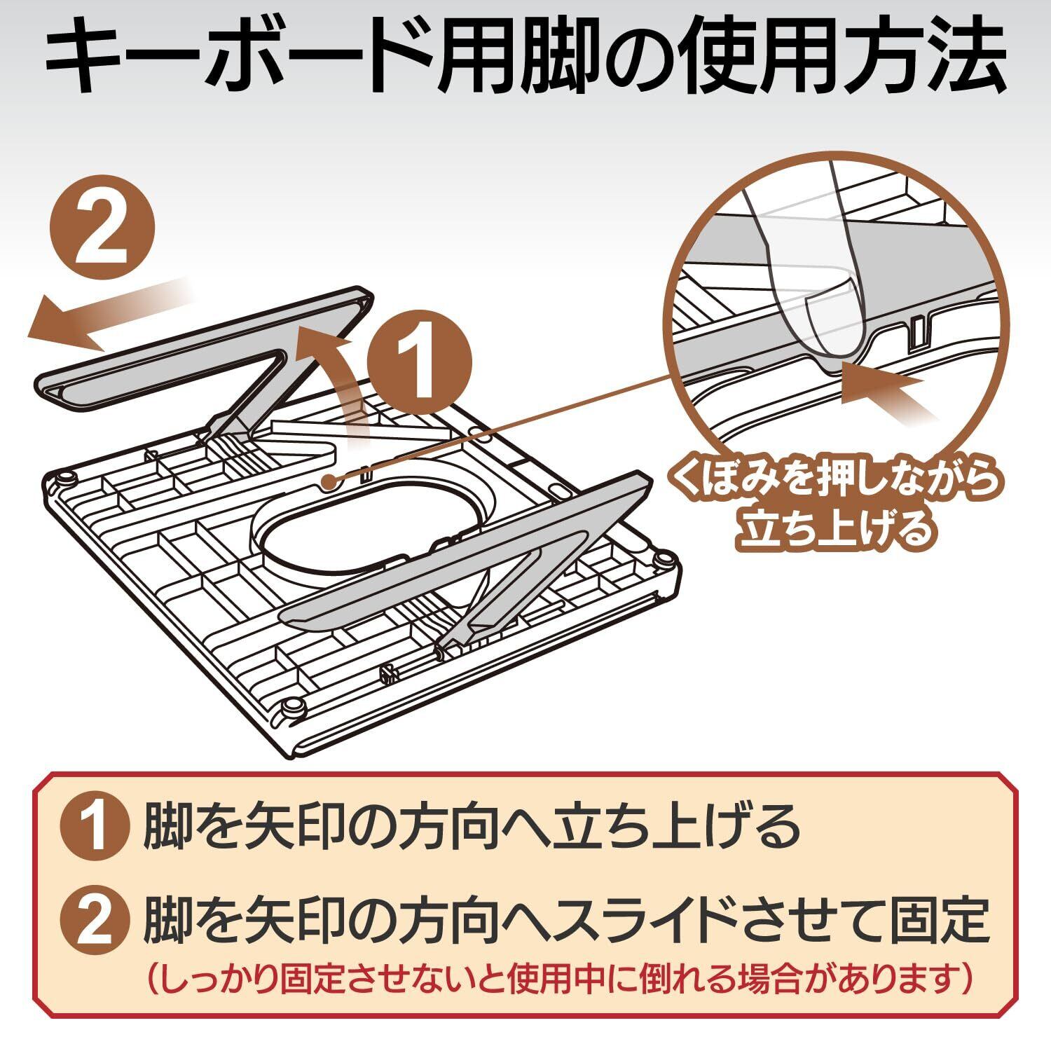 高さアップ脚を利用すればノートPCスタンドの下のスペースを有効活用でき、ノートPCスタンドの下のスペースにキーボードを収納することができます。