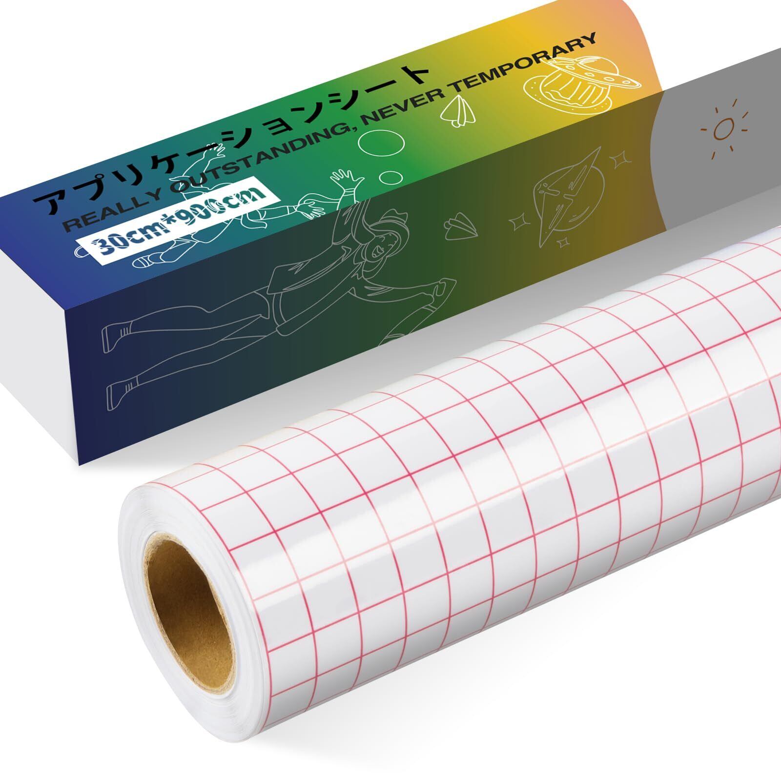 【2022最新】YRYM HT アプリケーションシート 30cm*900cmロール 転写シート 透明フィルム カッティング用シートに適用 レッドグリッド両面デザイン …
