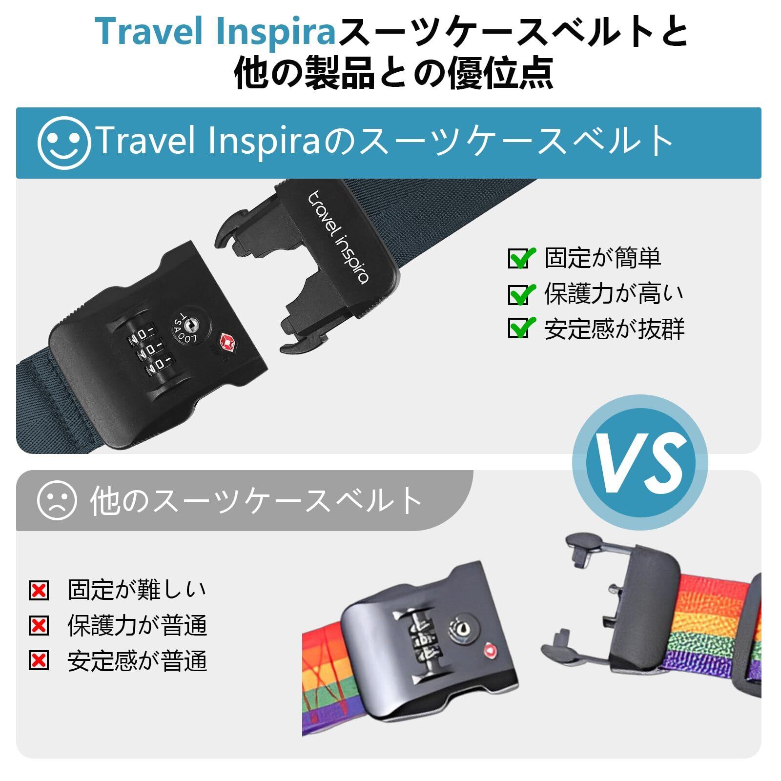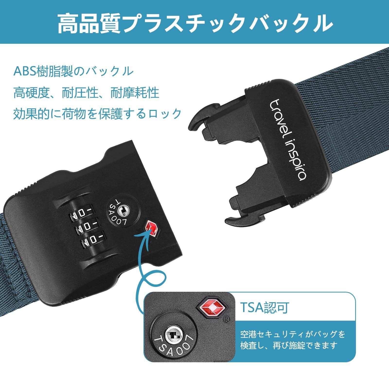 【特価セール】travel inspira 【TSAロック】スーツケースベルト 旅行 便利グッズ 荷締めベルト キャリーケース バンド 荷崩れ防止・調整可能 I字型 十字型 軽量 3桁ダイヤル式 固定ベルト ずり落ち防止 旅行/出張に最適 (I字型, ネービー)