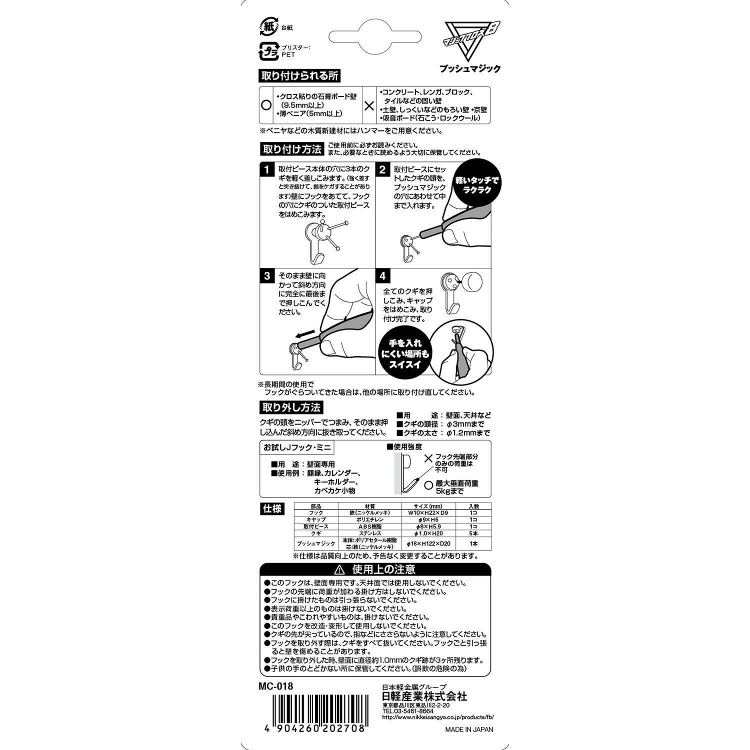 【人気商品】日軽産業 マジッククロス8 J hook プッシュマジック MC-018 グレー