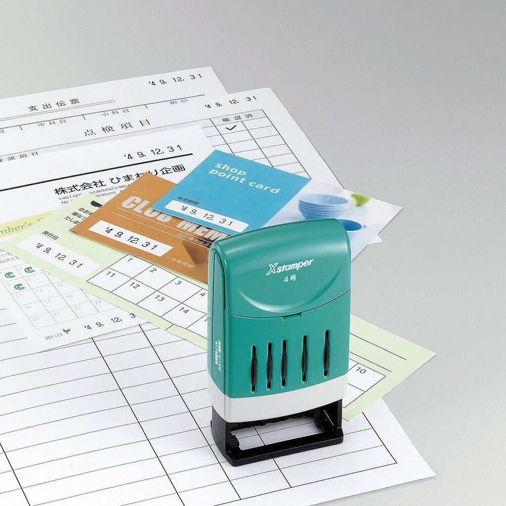 スタンプ台を使わずにそのまま連続なつ印できる、和暦・略西暦に対応したベルト回転式の日付印です。