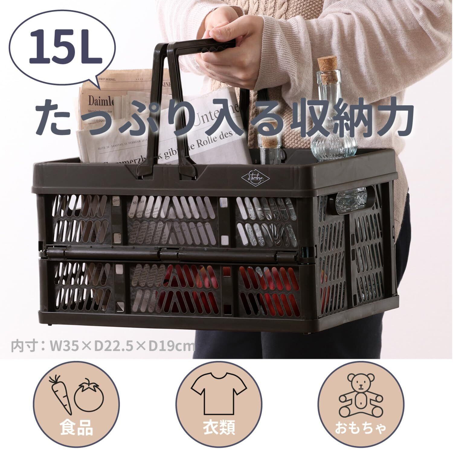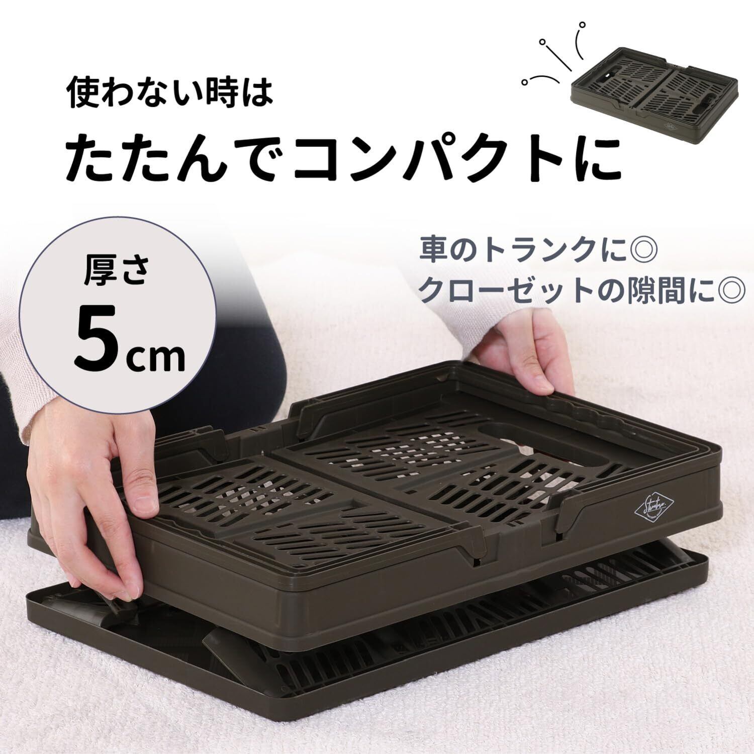 折りたたみ時サイズ:幅38×奥行25.5×高さ5cm、展開時内寸:幅35×奥行22.5×高さ19㎝