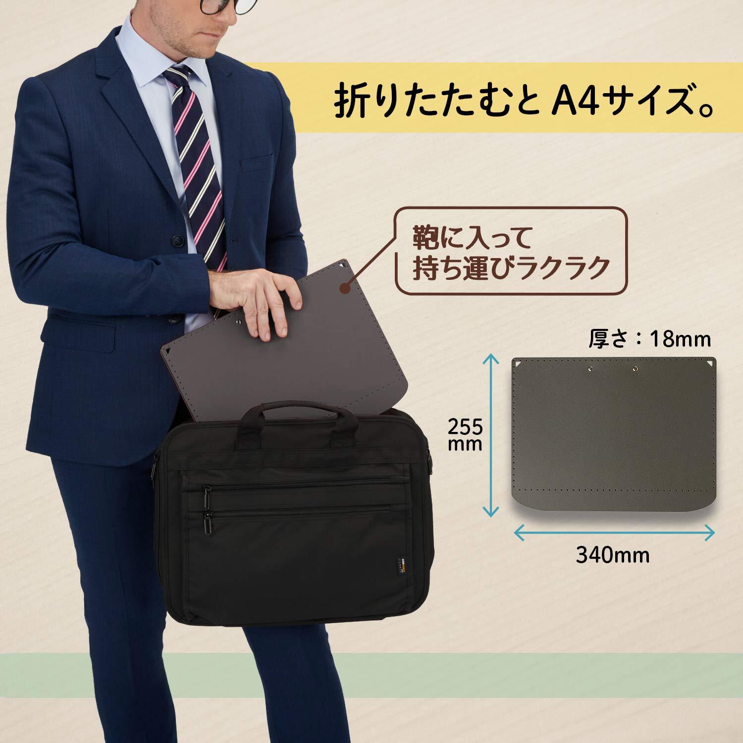 プラス A4サイズにおりたためる A3クリップボード+ ダークグレー 83-151 専用ストラップ 付