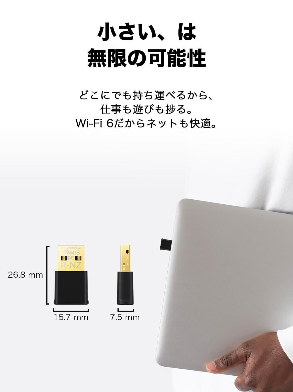 [ナノデザイン] 小型で持ち運びにも便利なWi-Fi6アダプター