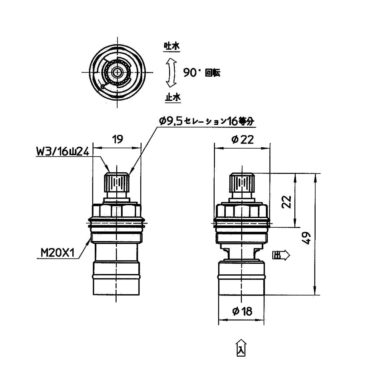 SANEI(旧社名:三栄水栓製作所)ミニセラ水栓カートリッジ SANEI製用 純正部品 PR37-182X-S
