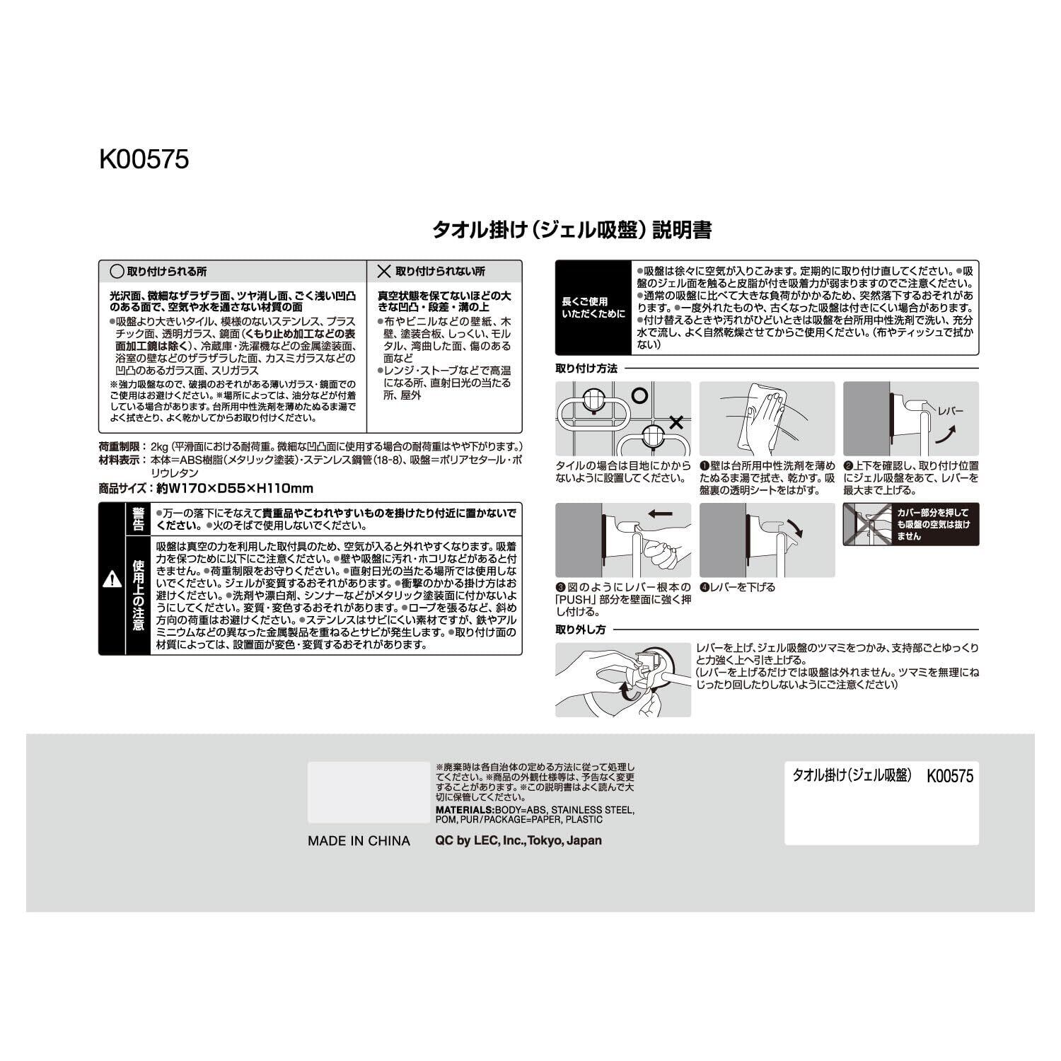 レック タオル掛け (ジェル吸盤) 耐荷重2kg サビにくいステンレスリング