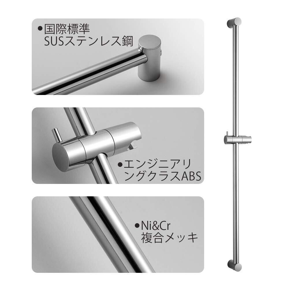 [耐久性] スライドバーは国際標準のステンレス素材を採用し、堅固で長持ちできます。フックは高強度のABSを使い、軽くて取付も簡易です。