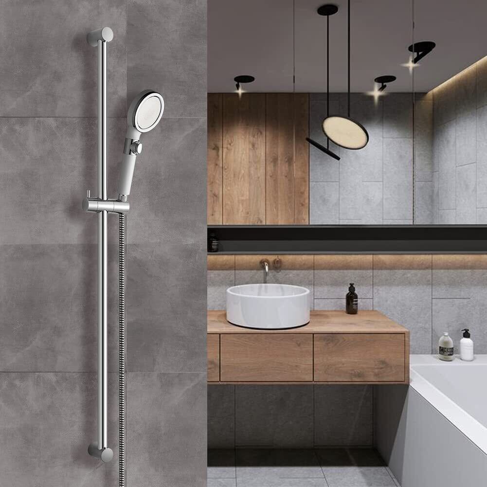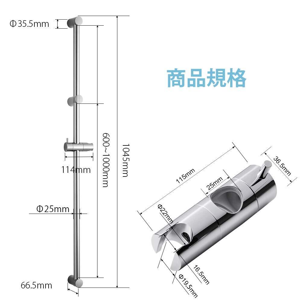 OFFO シャワースライドバー 1000㎜ シャワーバー 600mmから1000mmまで ピッチ穴距離調整可能 スライドバー付シャワーフック シャワ角度調節可能 浴室用 クロムメッキ 全長100cm 日本語取付説明書付