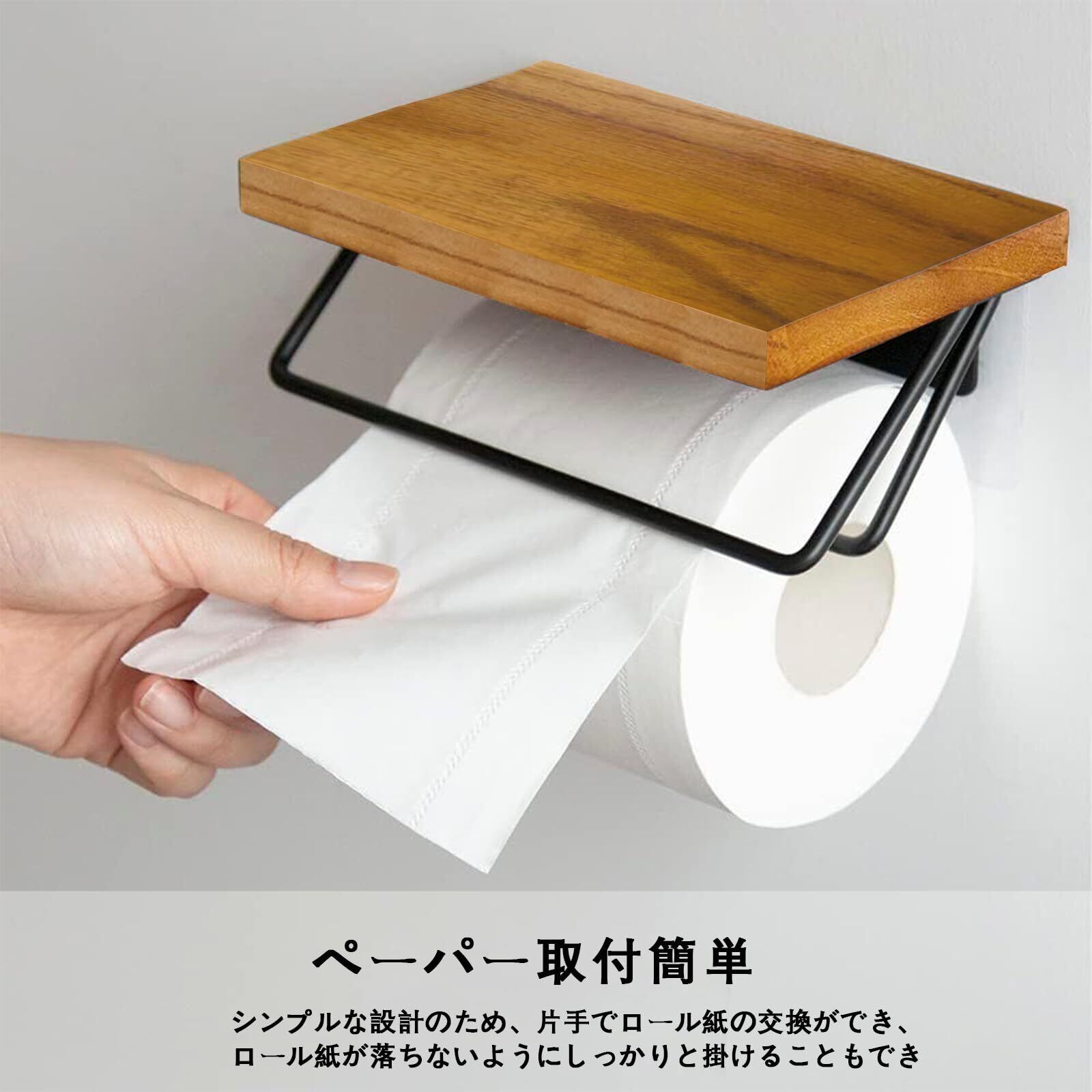 【小物を置くて大変便利】ペーパーホルダーは小物置き棚があり、スマホやお財布、生理用品などの小物を置くのに大変便利です。ウッド天板、小物を置いてアレンジも楽しめます。