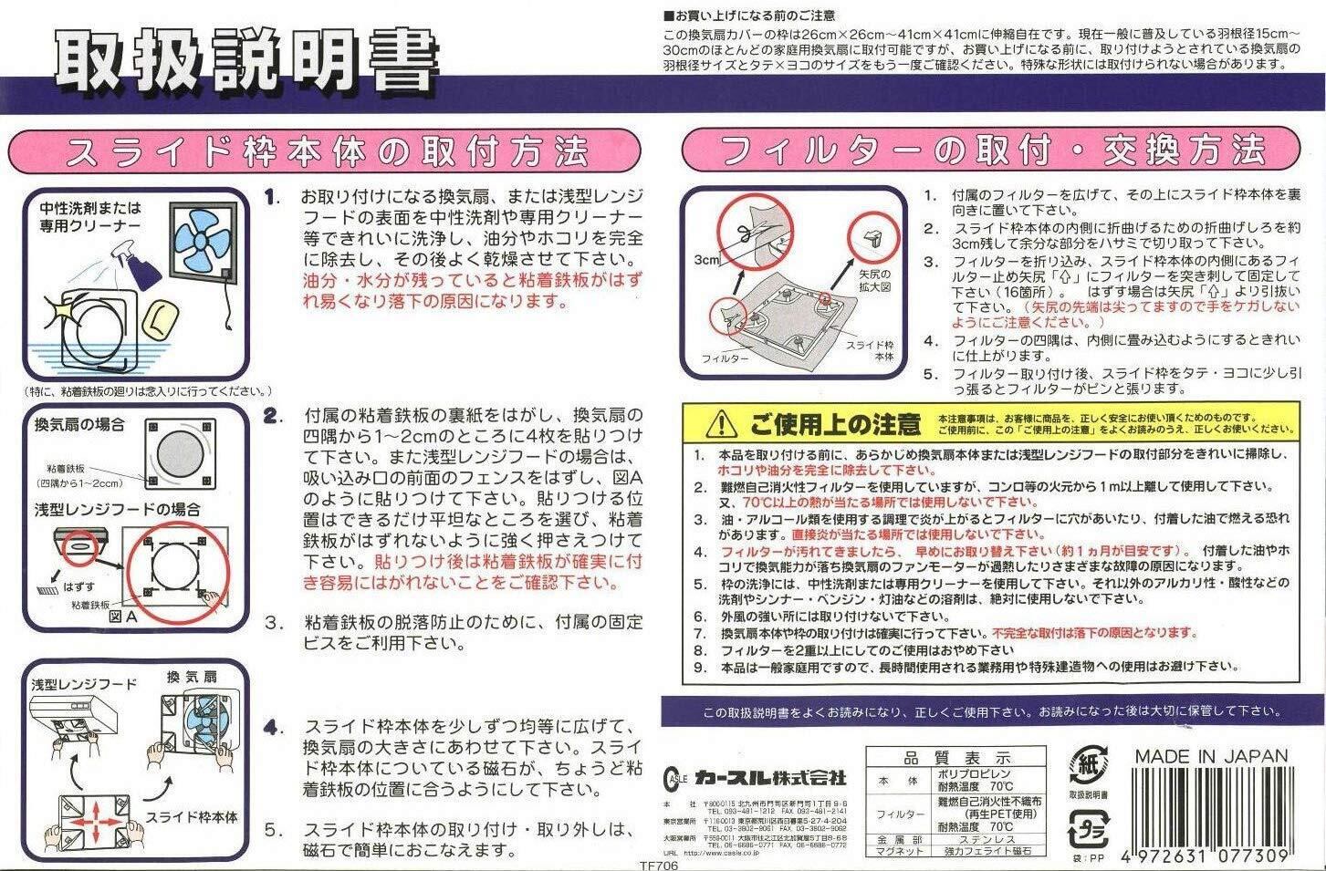 材質:枠/ポリプロピレン、フィルター/難燃自己消化性不織布(再生PET)