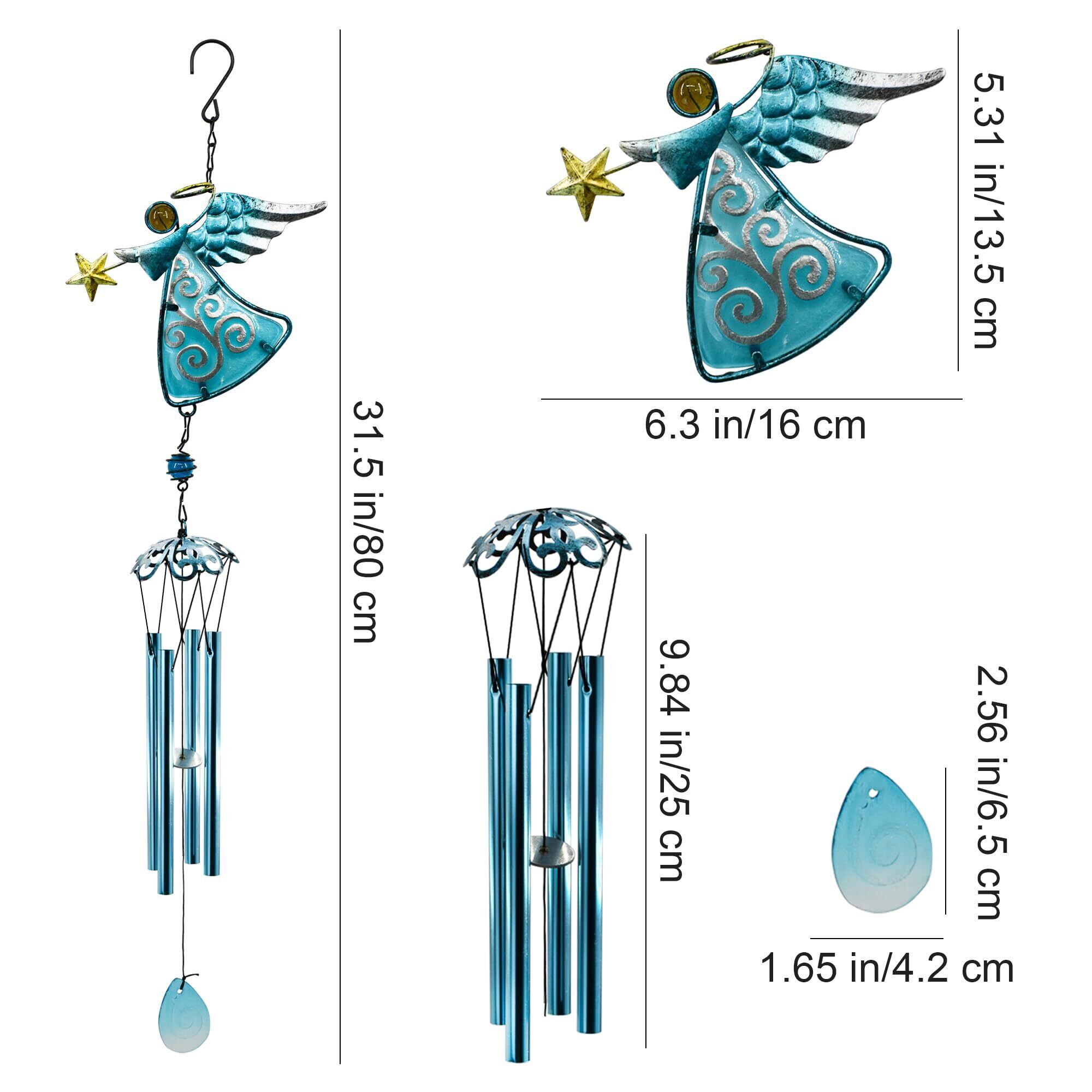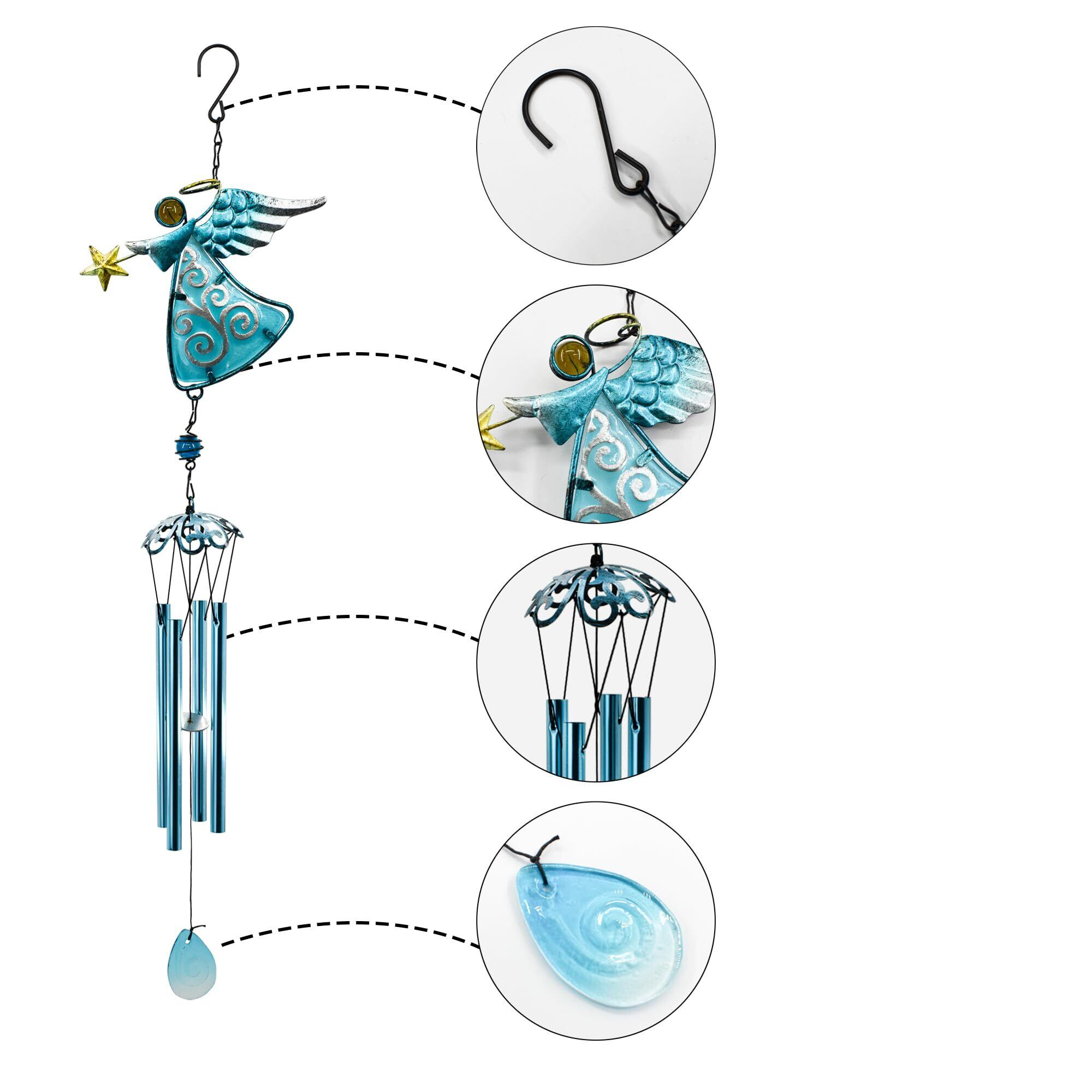 MrMrKura 風鈴 エンジェル 天使風鈴 金属 ウインドチャイム 玄関 吊り下げ 庭 屋外用 エンジェルウインドチャイム 工芸装飾用風鈴 インテリア 飾り 手作り風鈴 屋内装飾 4本パイプ (青)