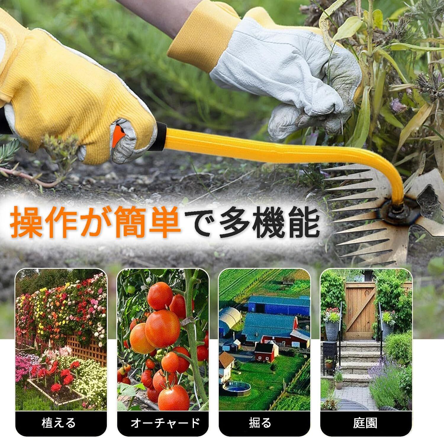 優れた機能性:この手動除草ツールは実用的で軽量の園芸ツールであり、土を緩めることができ、簡単に雑草を取り除くのに役立ちます。耙(は)を備えており、屋外の庭や芝生の雑草を簡単に除去でき、労力を節約します。作業手袋1組付き。