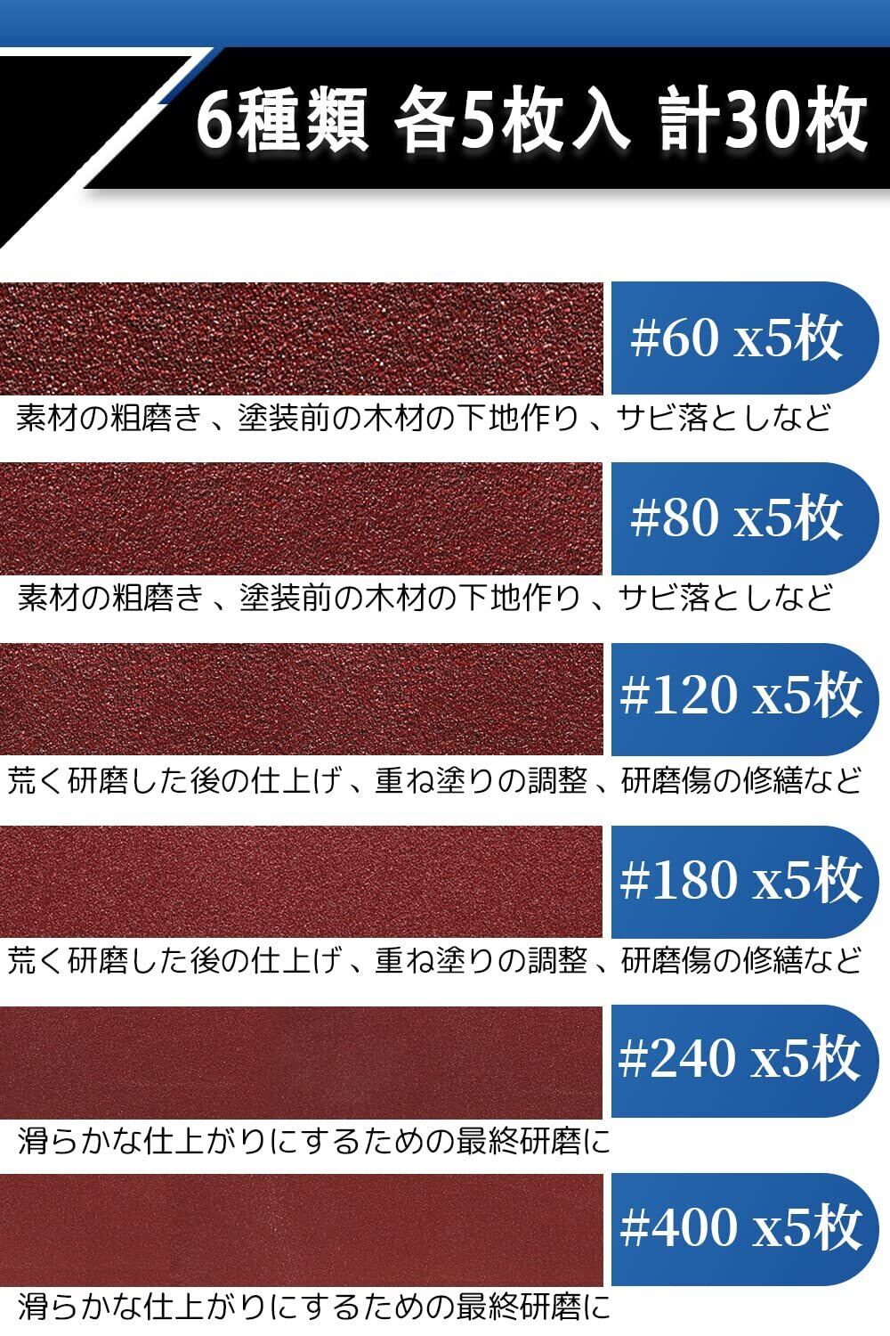 【ほとんどのニーズをカバーする砥粒】:30本組10x330 mm替えベルト-荒削りから仕上げまでセット#60/#80/#120/#180/#240/#400×各5本。コスパ抜群、種類多い-すべての研磨要件を満たすのに十分