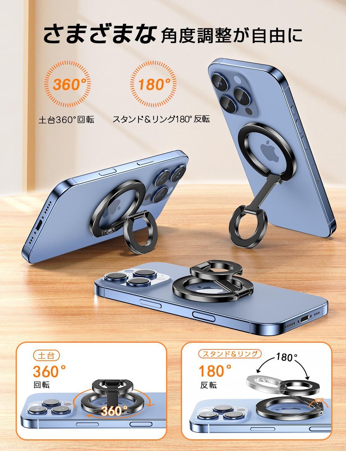 【新春セール】【2in1スマホリング&スマホスタンド】magsafe リング 超强磁力 マグセーフリング バンカーリング マグネットリング 卓上スマホスタンド 両面マグネット 2段階リング 角度調節可能 横縦両立 携帯リング 薄型 軽量 簡単着脱 iPhone 17/16/15/14/13/12シリーズなど対応 メタルリング付