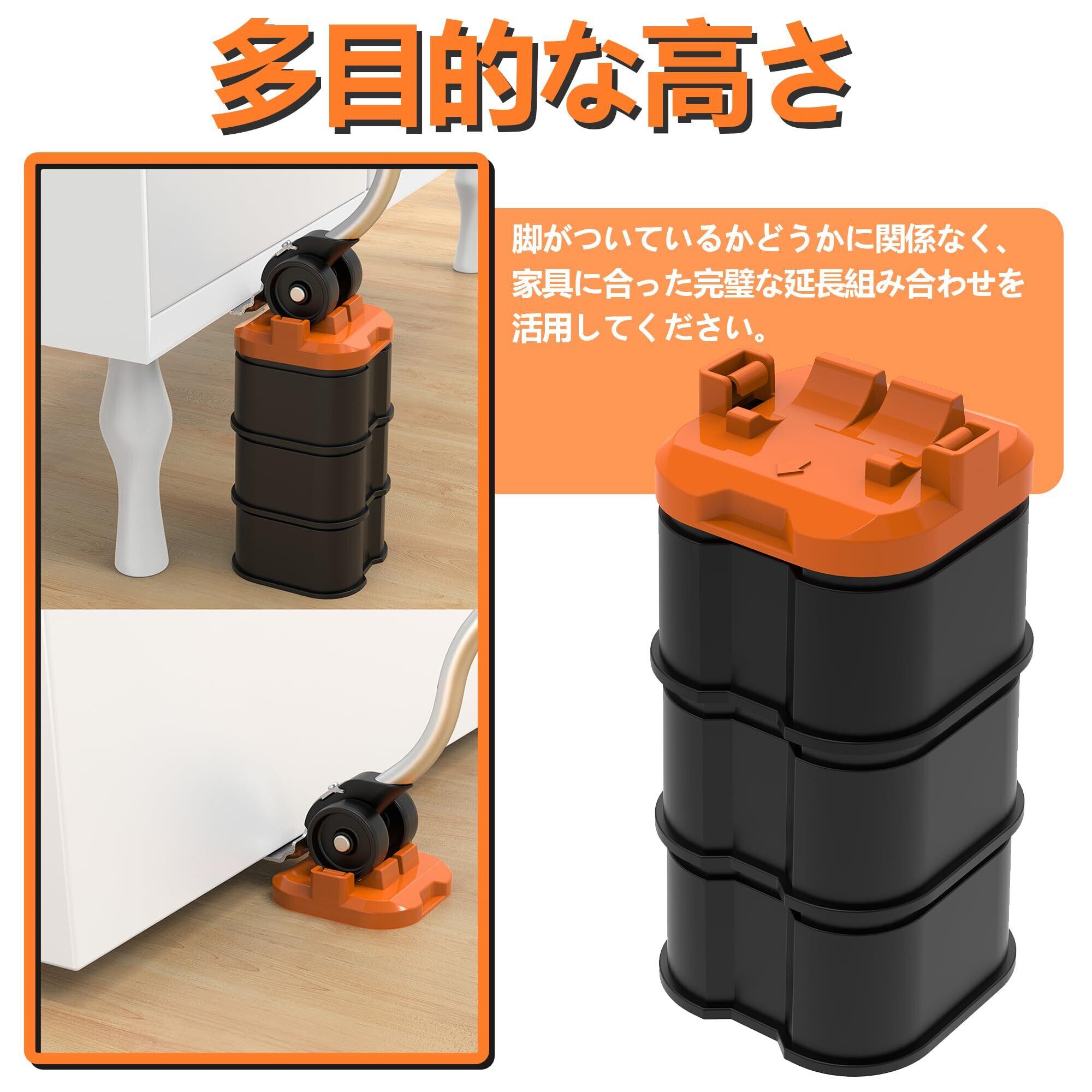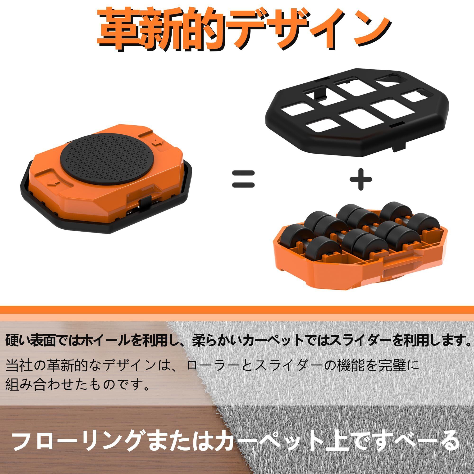 【2022最新】家具移動 ヘルパー 軽がるキャリー ドーリー 移動スライダー と 輪式 ツーインワン 耐荷重300Kg 重いもの移動 便利グッズ (オレンジ)