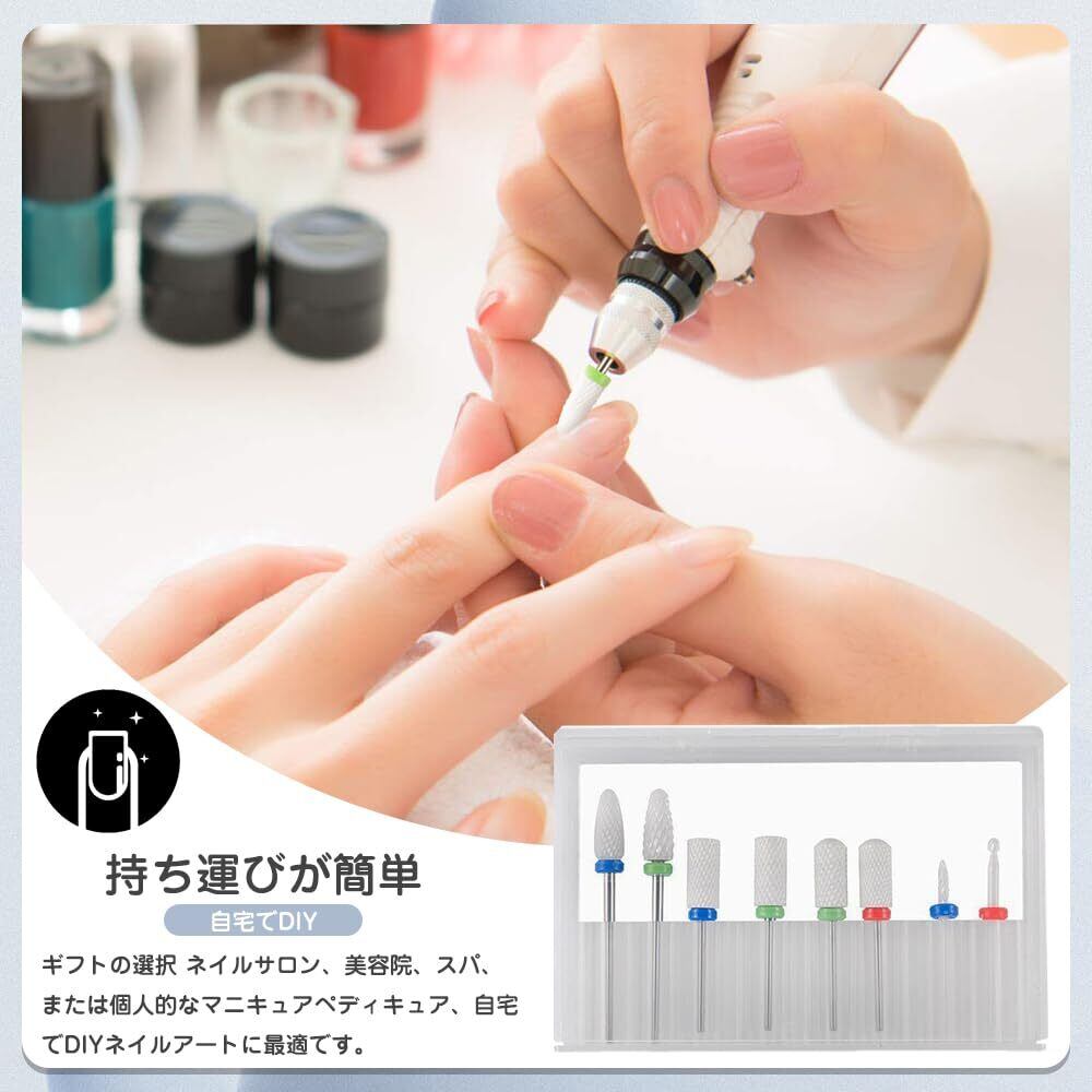 ネイルビット セラミック ネイルマシン ビット 8個セット 多機能ネイルビット 甘皮処理 角質除去 研削ネイル DIY研磨 自宅サロン用 自爪の負担軽減 素早く除去 爪を傷めずに ネイル工具 簡単操作 初心者からプロまで幅広く対応 持ち運びに便利 収納ケース付